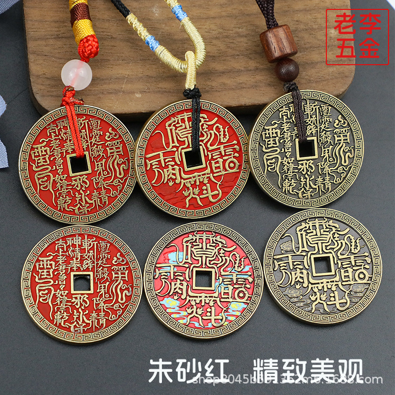 厚い金属朱砂山鬼銭五帝銭ゴシップ復古ストラップ