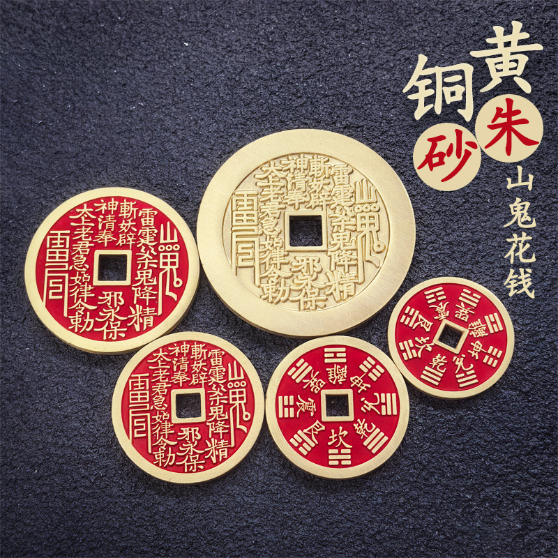 工場直販 山鬼銭 八卦銭 ペンダント 厚銅銭 レトロ中華風置物 赤朱山鬼銭
