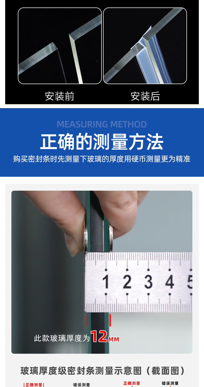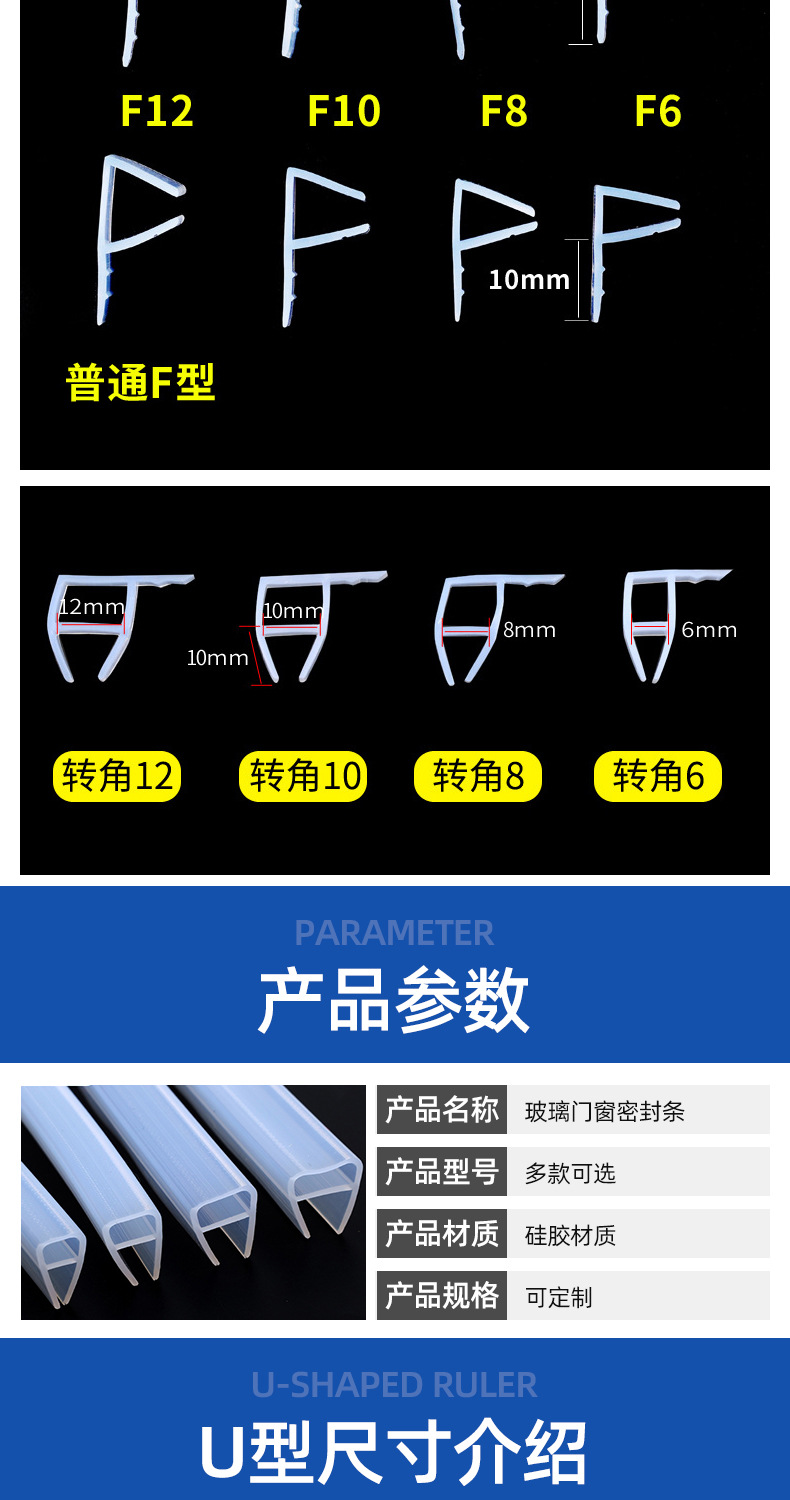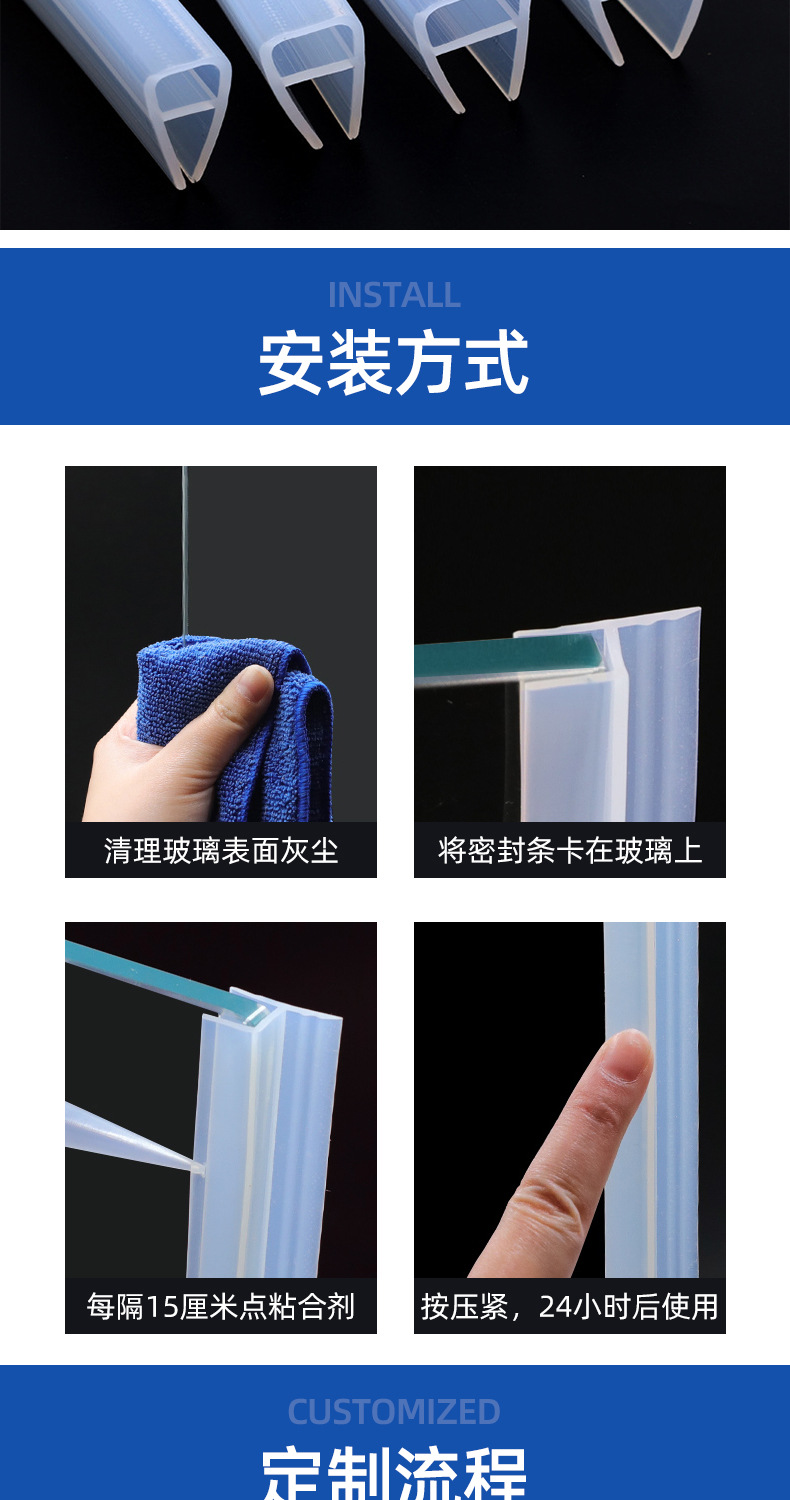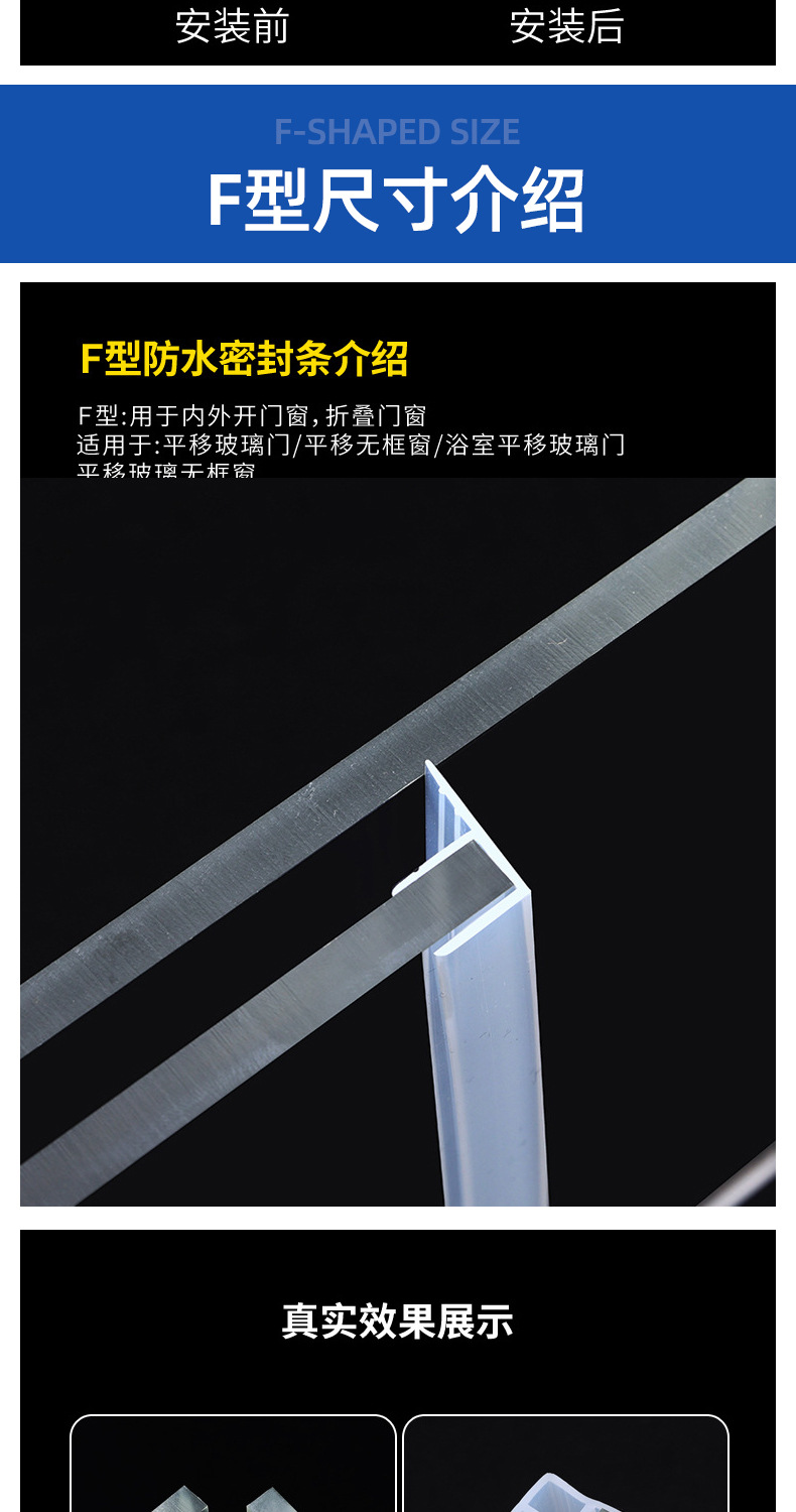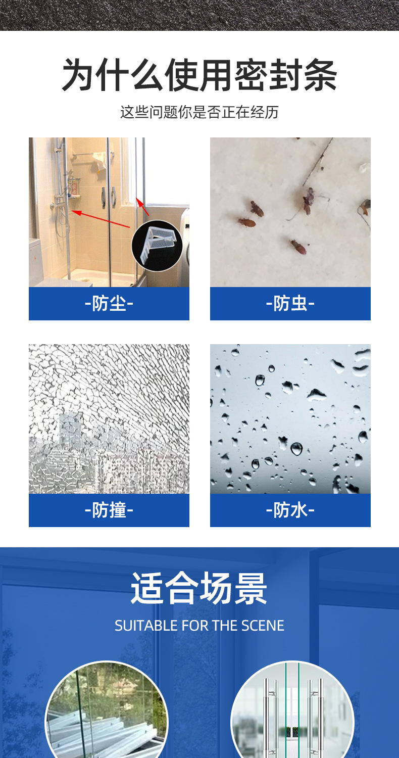 玻璃门密封条H型F型玻璃窗淋浴房浴室防水条胶条封边条包条密封条