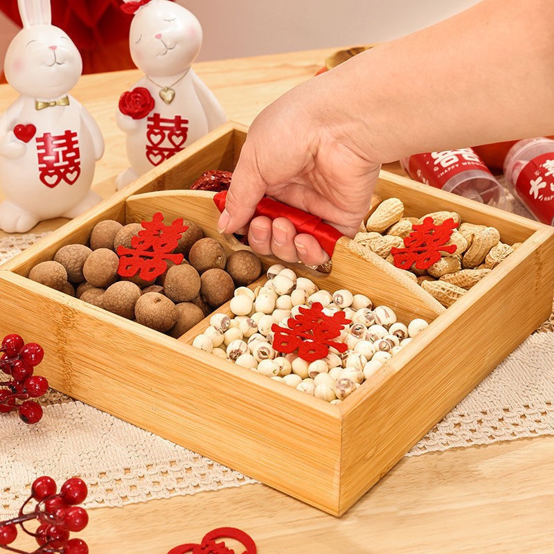 メーカー直売竹製ナッツ皿キッチンのリビングルームに四段の果物皿を飾っています。