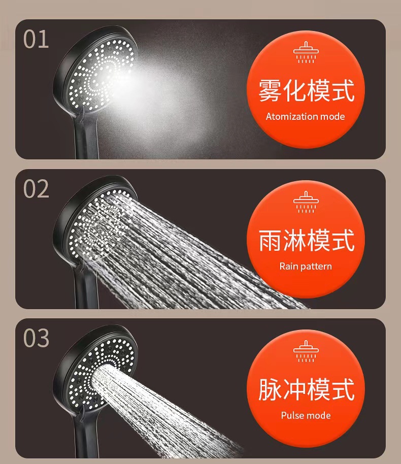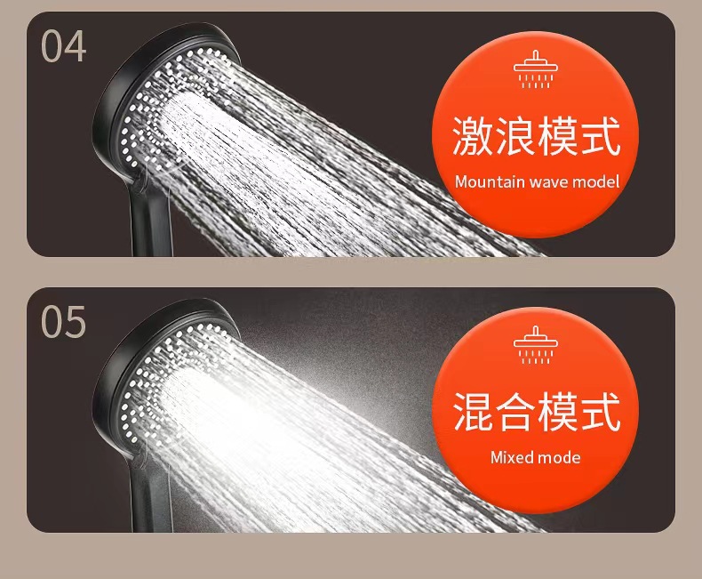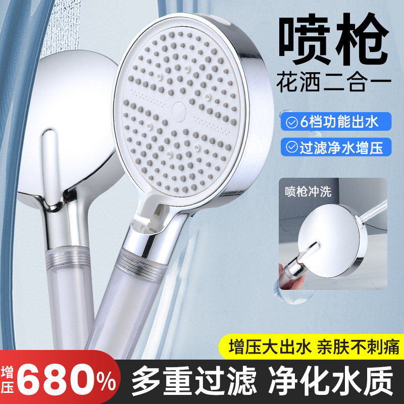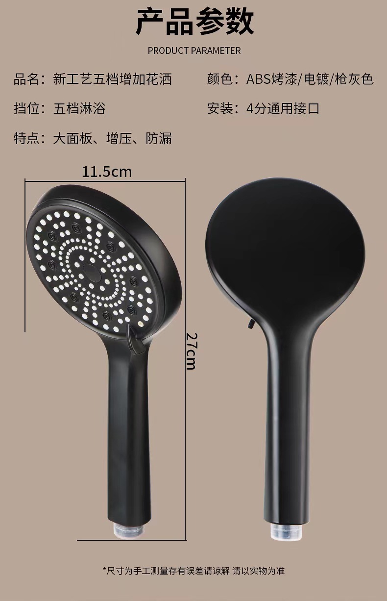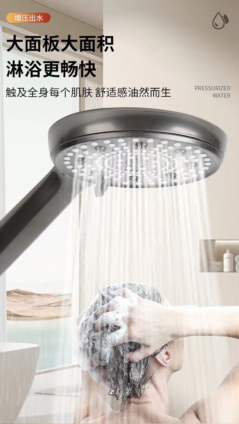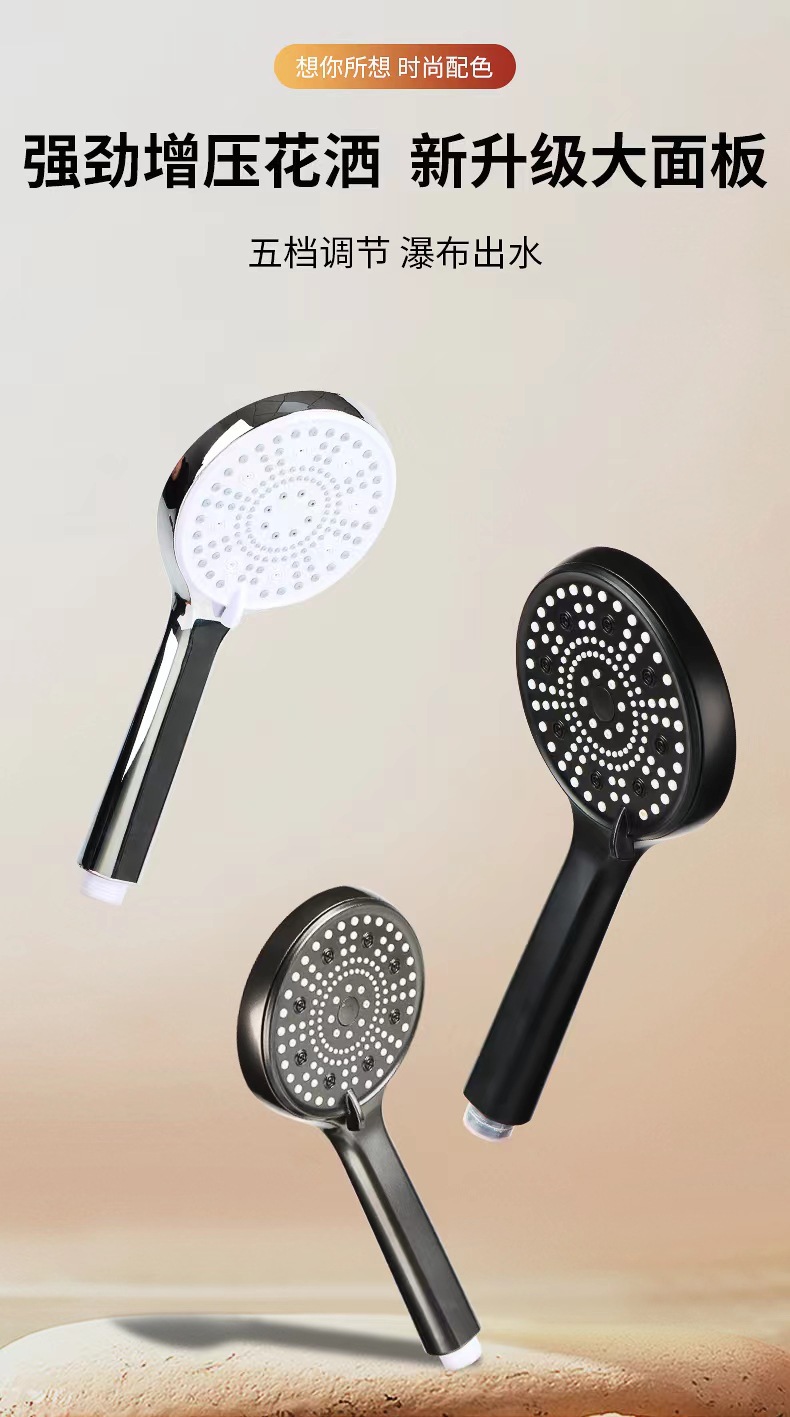 五档淋浴增压手持花洒喷头套装大出水ABS家用洗澡加压沐浴莲蓬头
