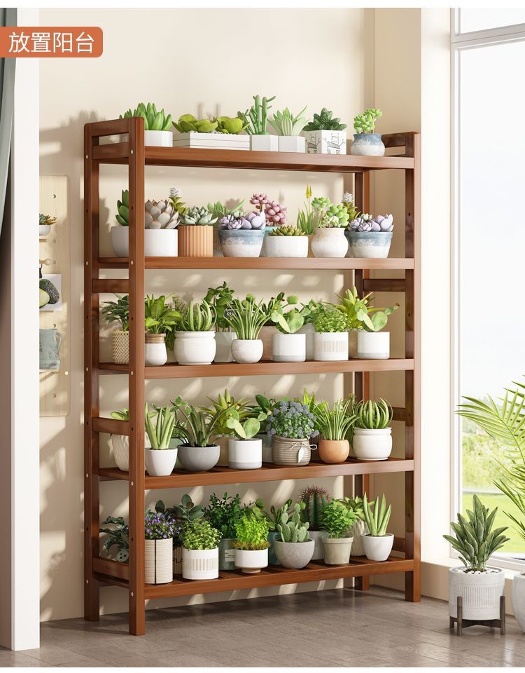 デスクトップ室内の花棚は小型でシンプルで多肉な緑の花の鉢棚です。