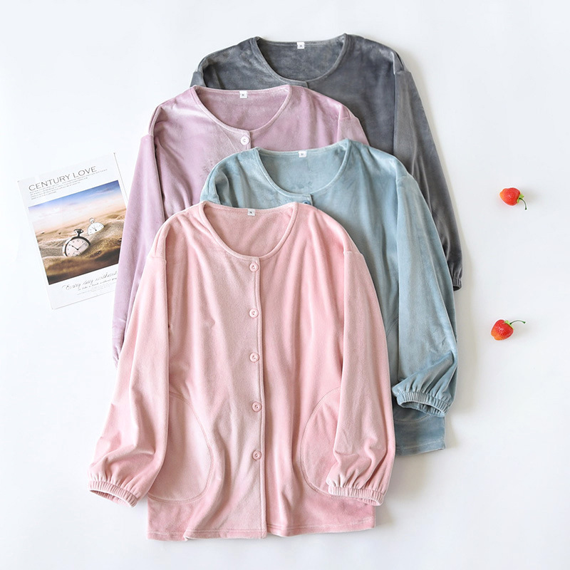 上着のパジャマ女性秋冬の冬のフランネルの厚いベルベットの家の服の冬の長袖