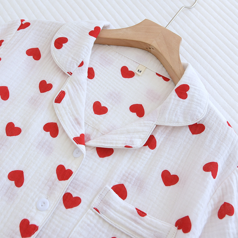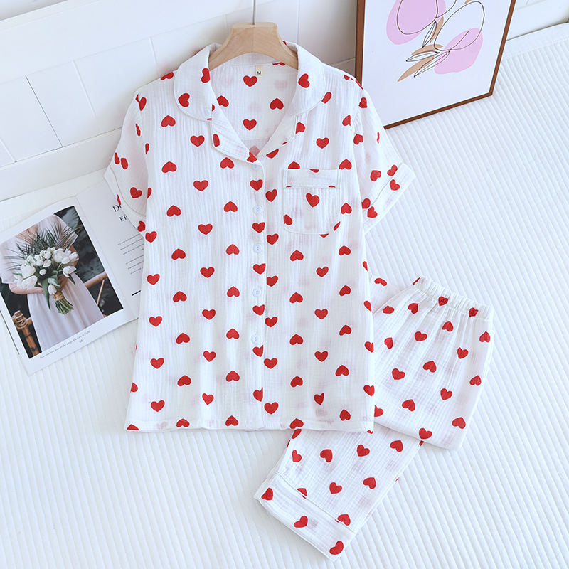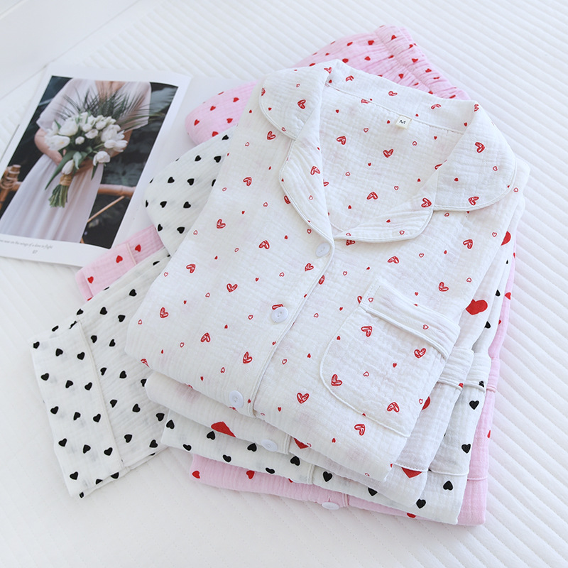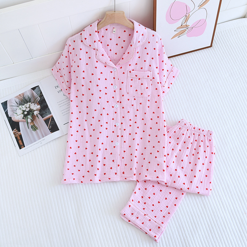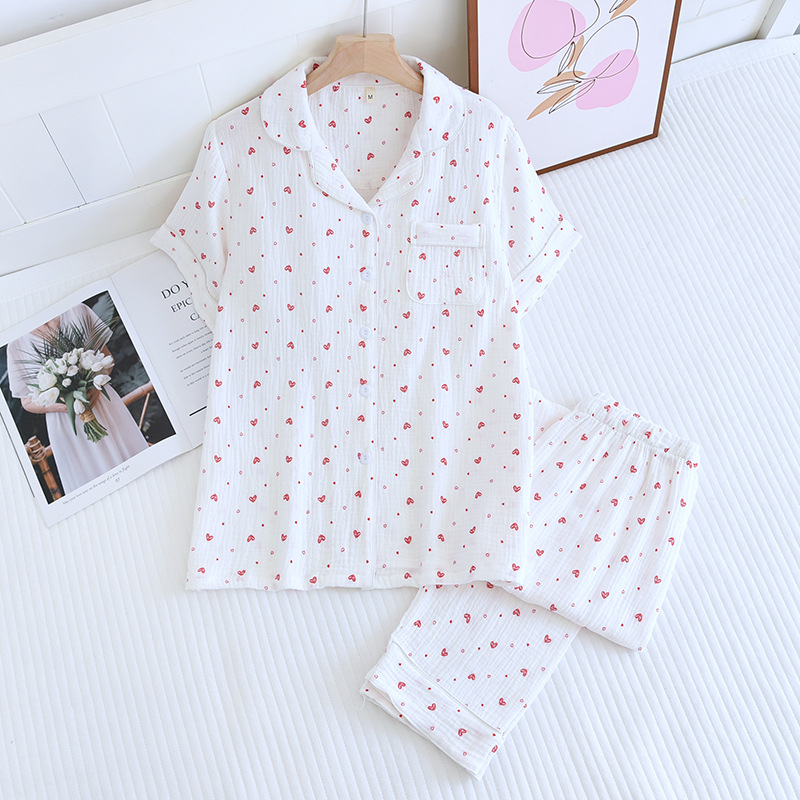 北欧スタイルの純綿二層ガーゼパジャマ女性のための春と夏の薄いズボンホーム服軽くて通気性のあるツーピーススーツ