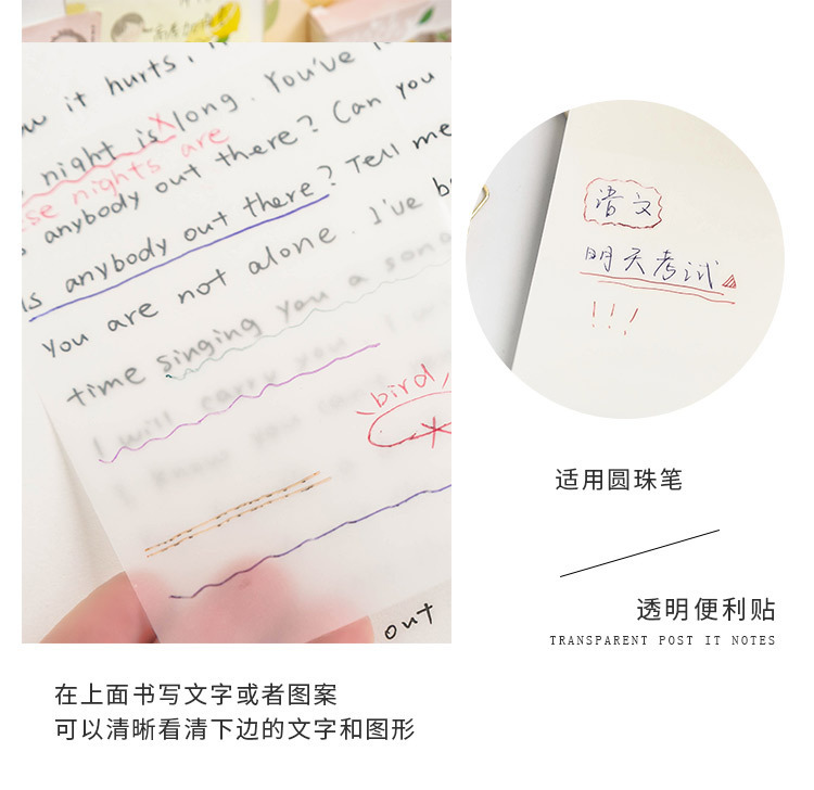 透明の便利なシールは手書きで粘りがあり、メモを裂くことができます。