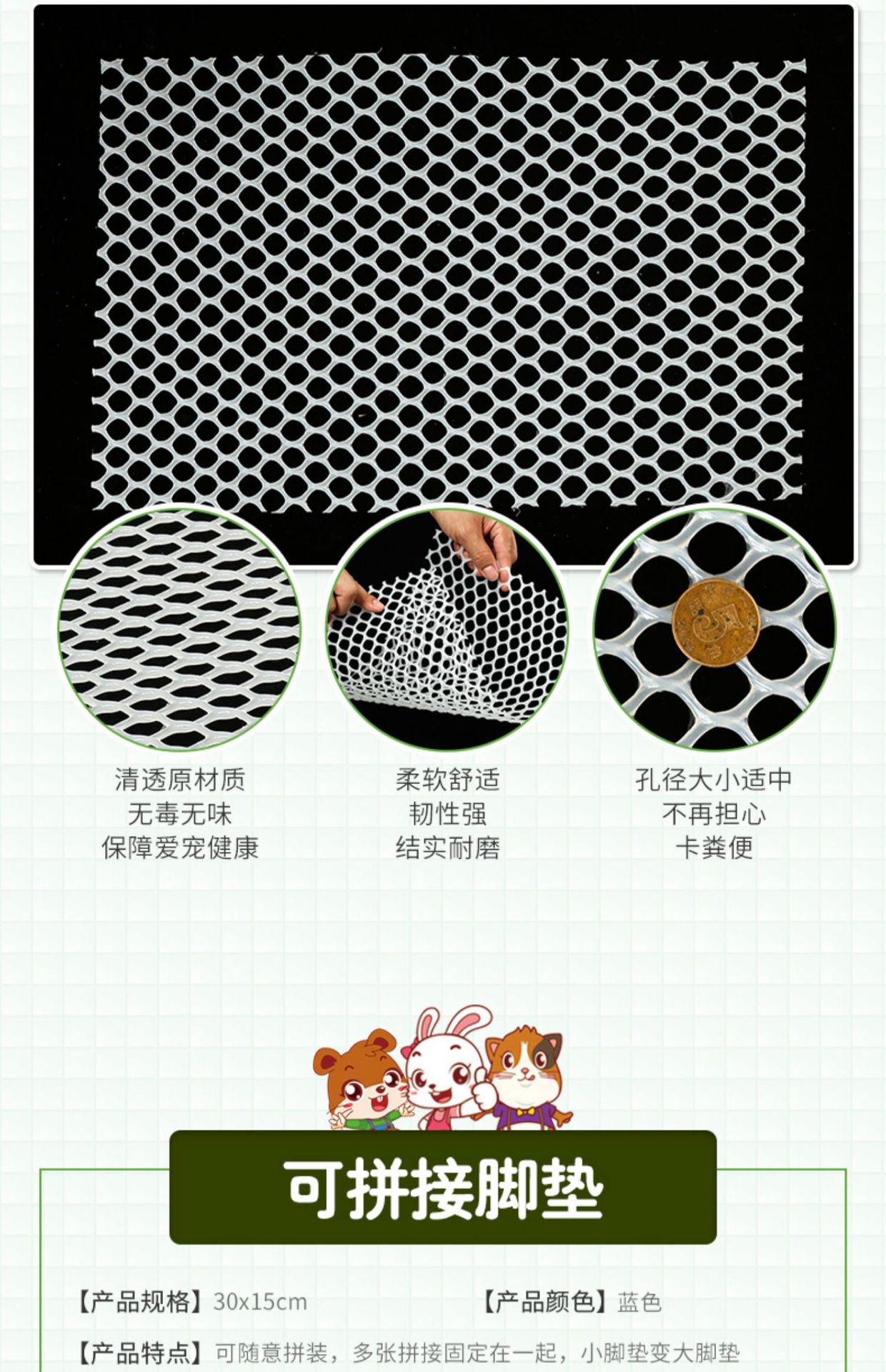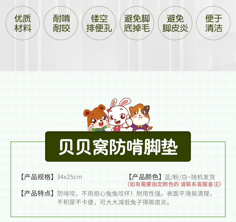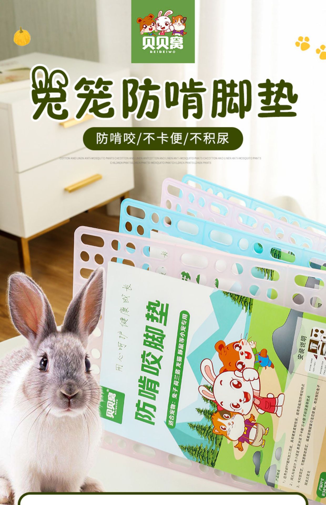 ウサギの足マットがかじって糞が漏れないようにします。