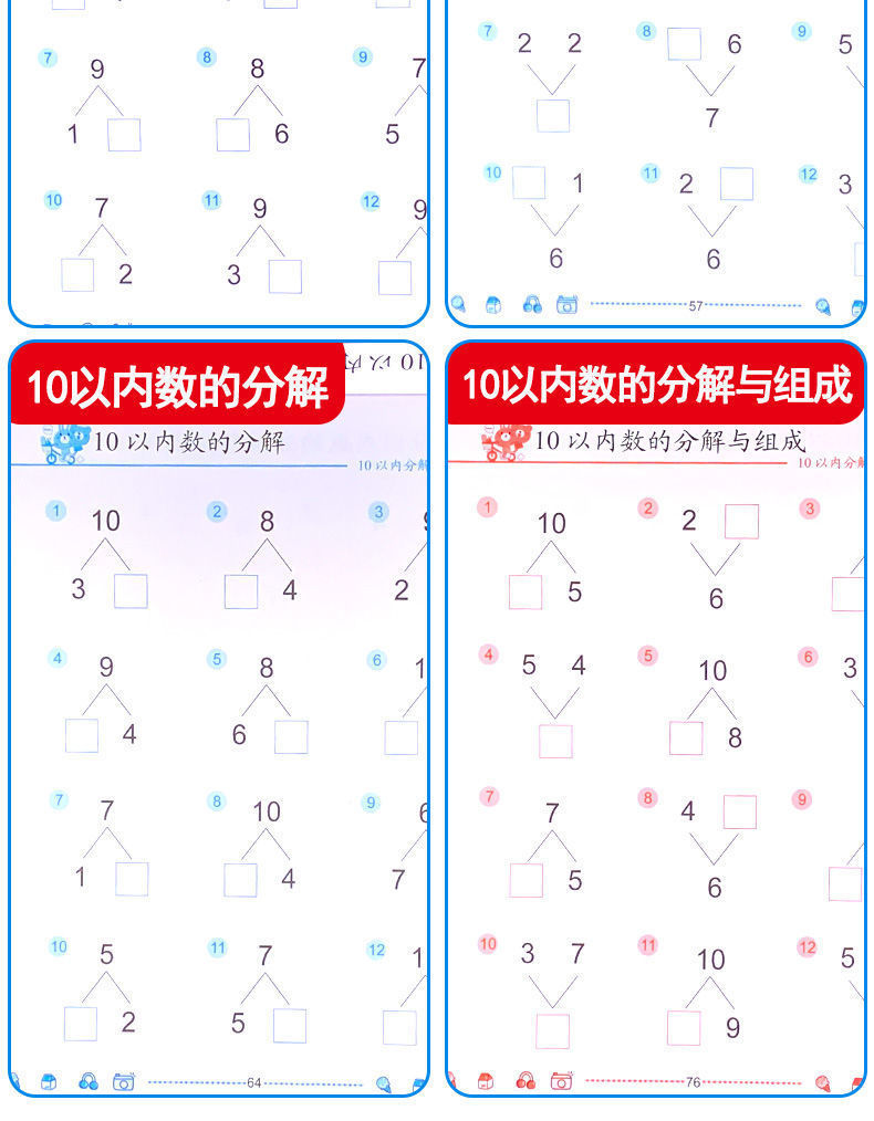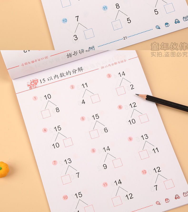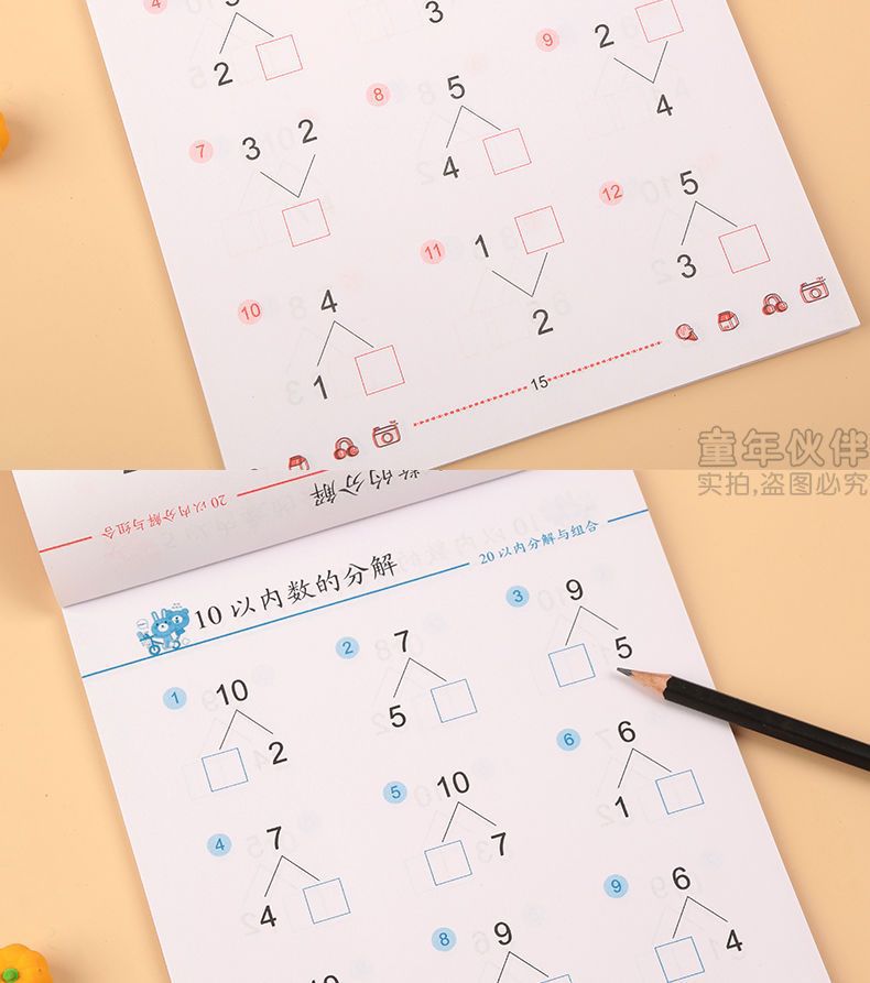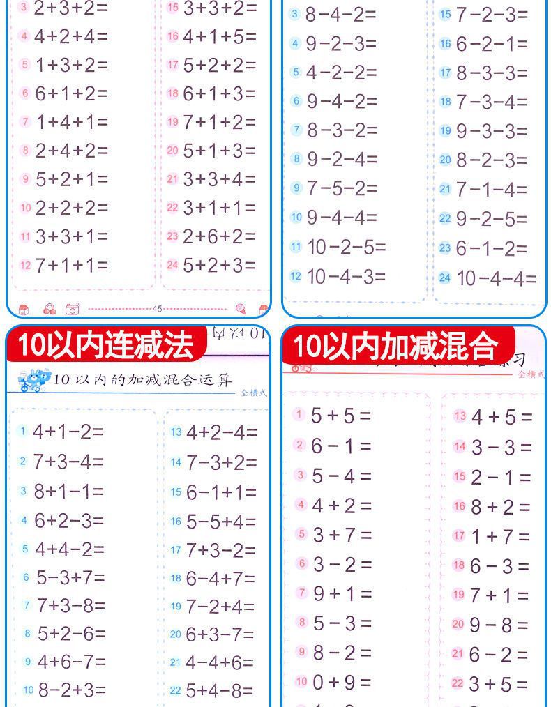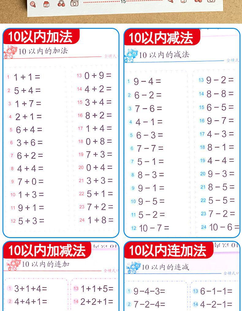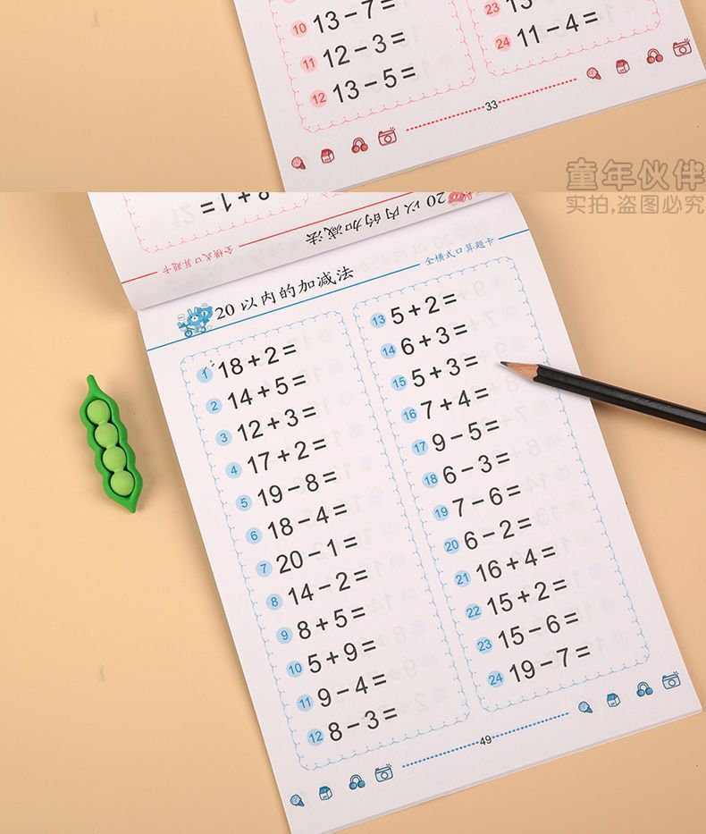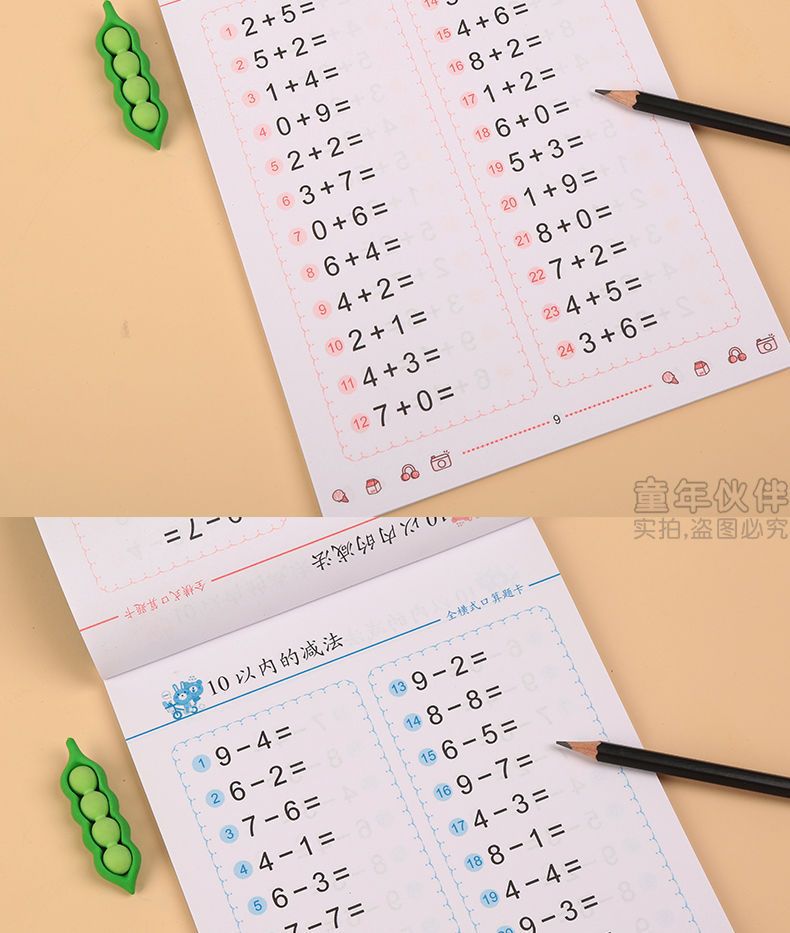 幼児算数問題カード幼稚園算数加減算練習帳20-10以内加算練習帳