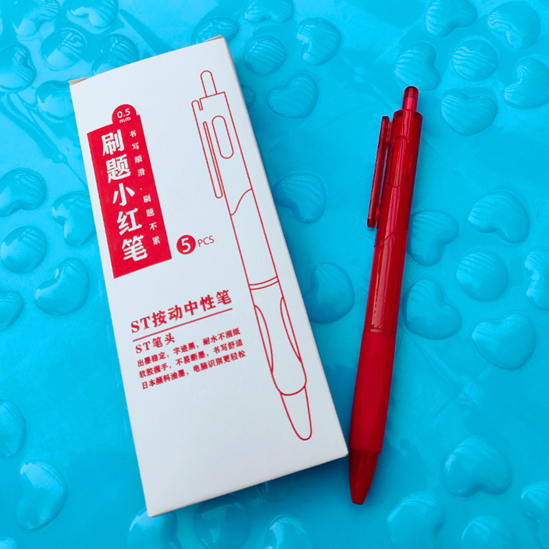 Stヘッドの中性ペンのスプリングヘッドはペンの簡単なタイプを押してペンの炭素の水のペンをブラシして0.5赤いペンの文房具を卸売りします。