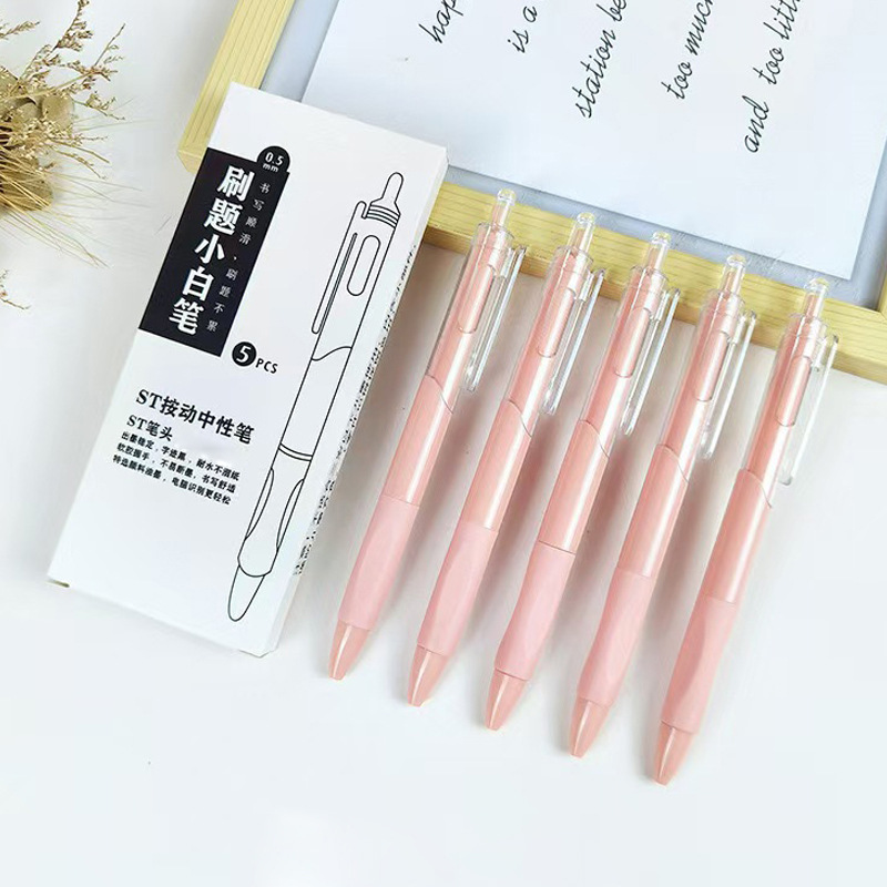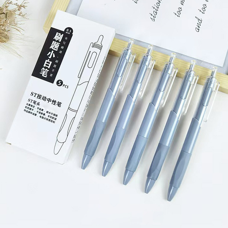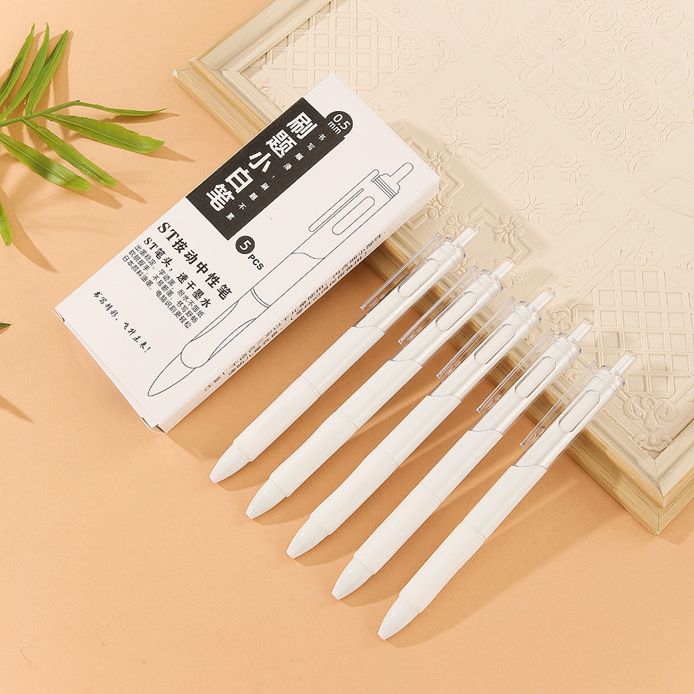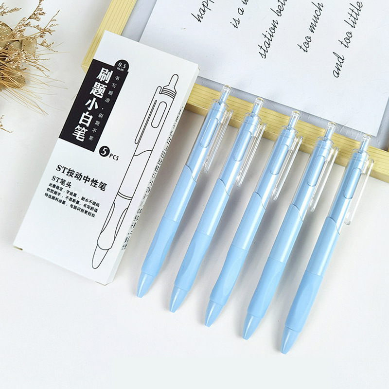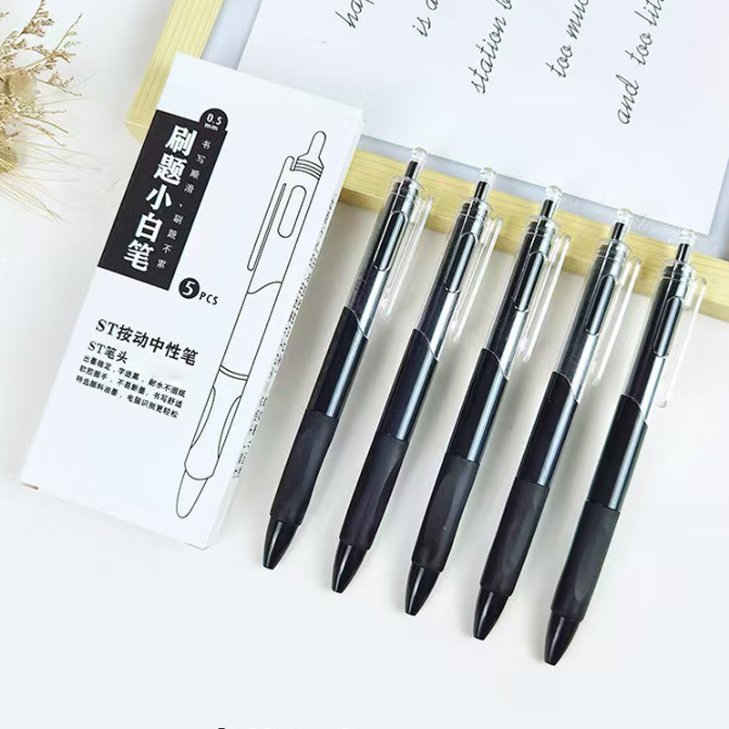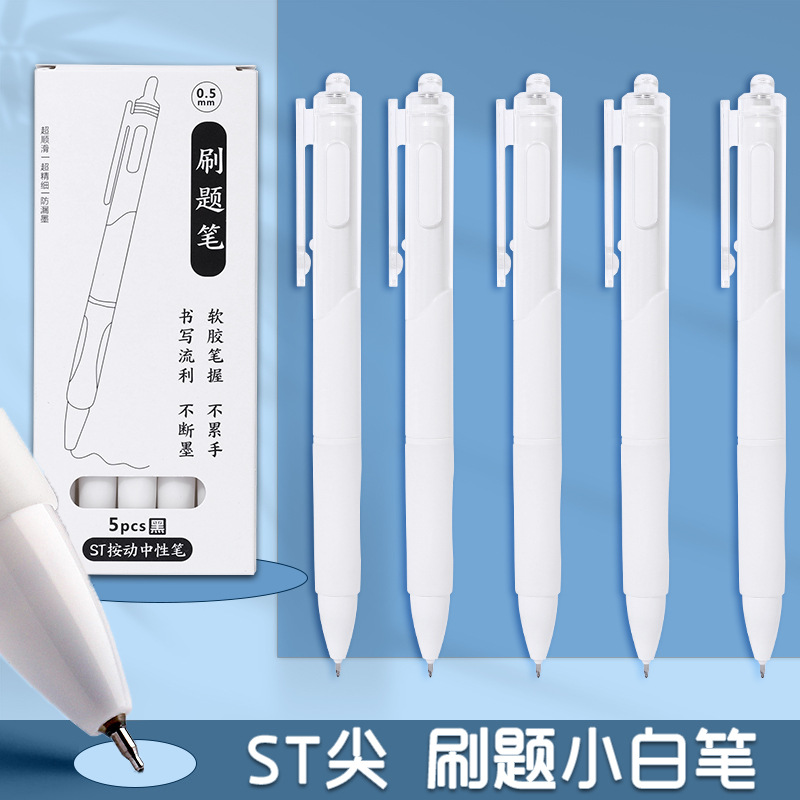 盒装5只装按动小白笔st头速干刷题中性笔黑笔学生考试办公书写笔
