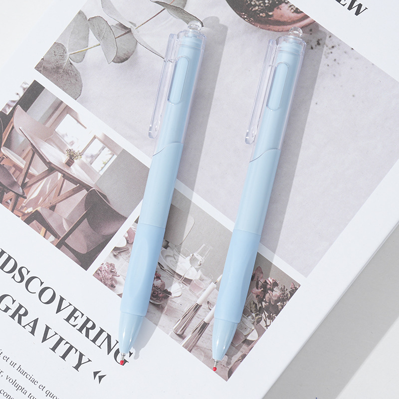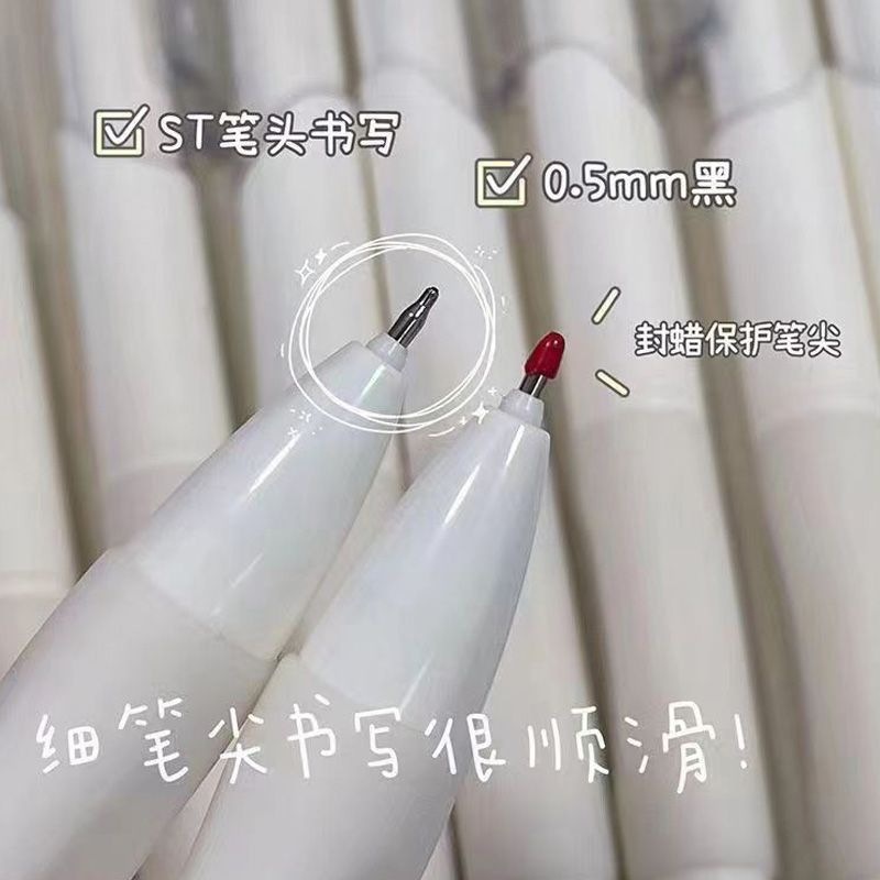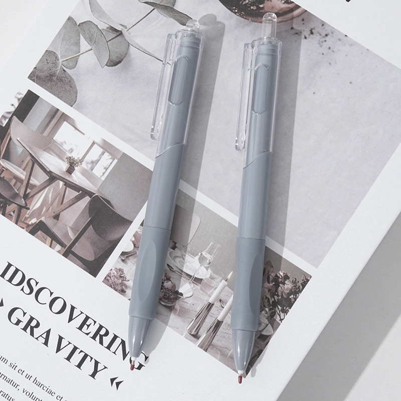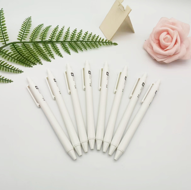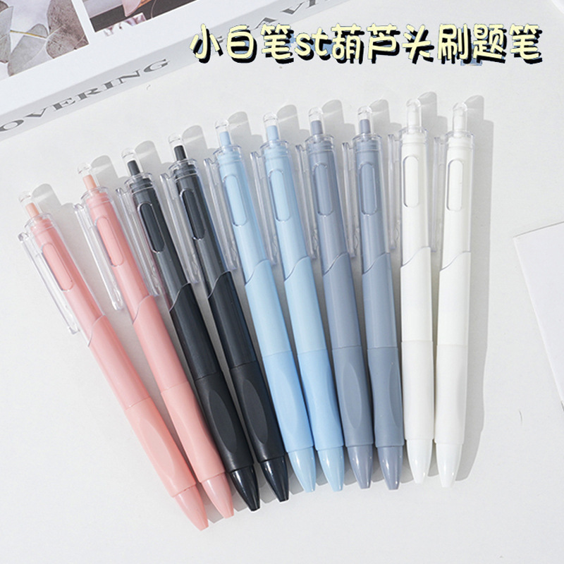 高颜値シンプルな白いペンSTスプリングヘッド速乾ブラシ問題ペン0.5押圧式中性ペン黒赤青サイン