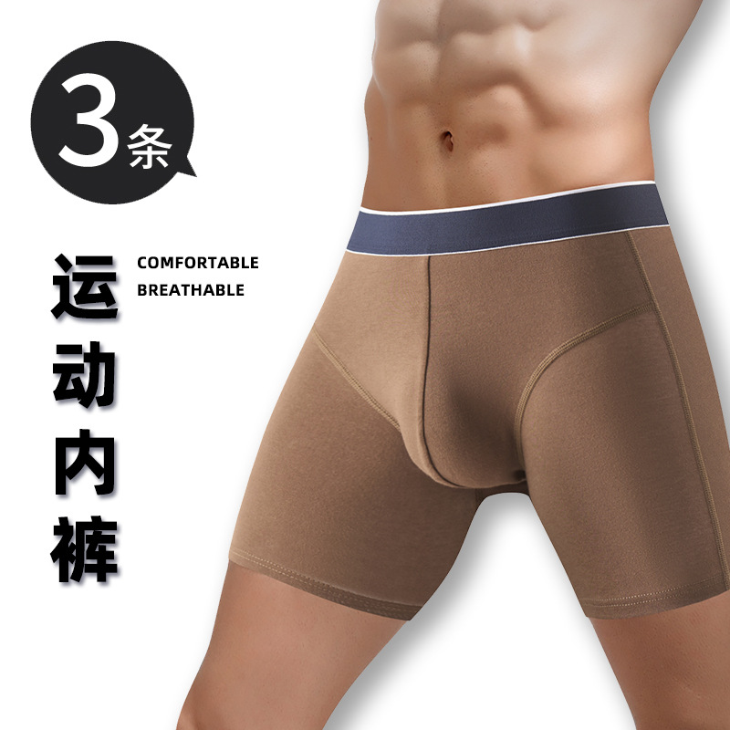 男士防磨腿内裤纯棉加长运动平角裤抗菌透气批发