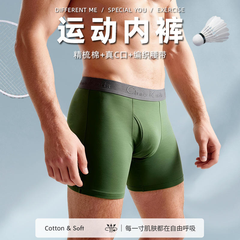 新款男士内裤精梳棉抑菌枪托式分离裆运动透气大码平角内裤四角裤