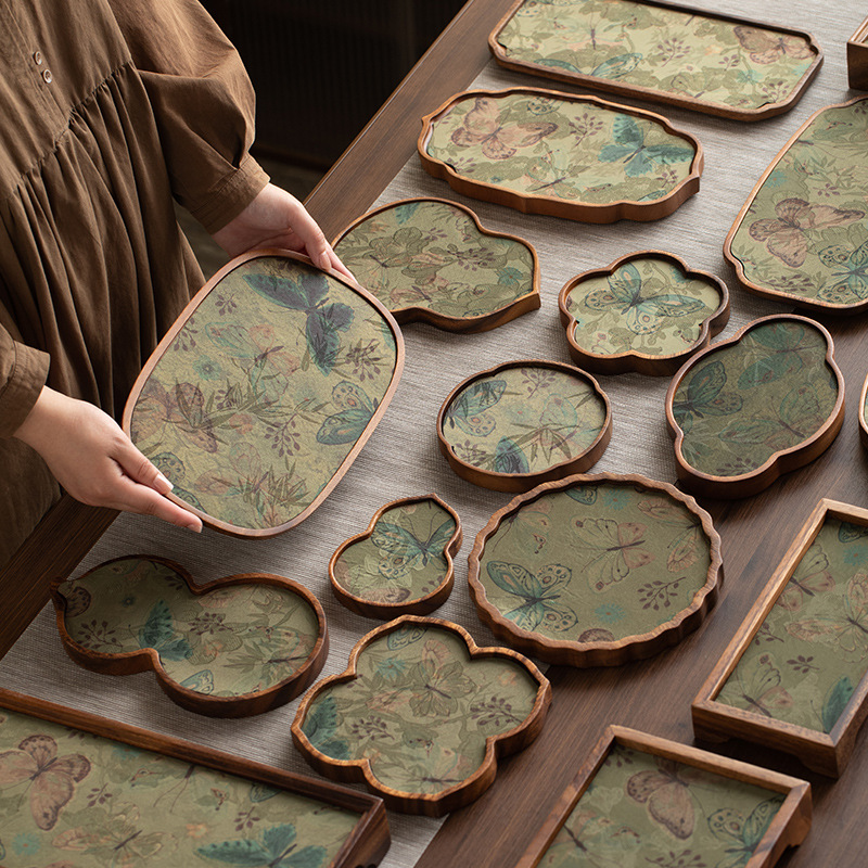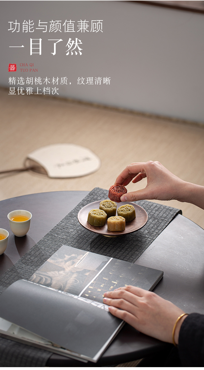 囲炉煮茶胡桃木果盤茶点盤乾果盤中国式禅意精緻菓子盤間食貢供盤