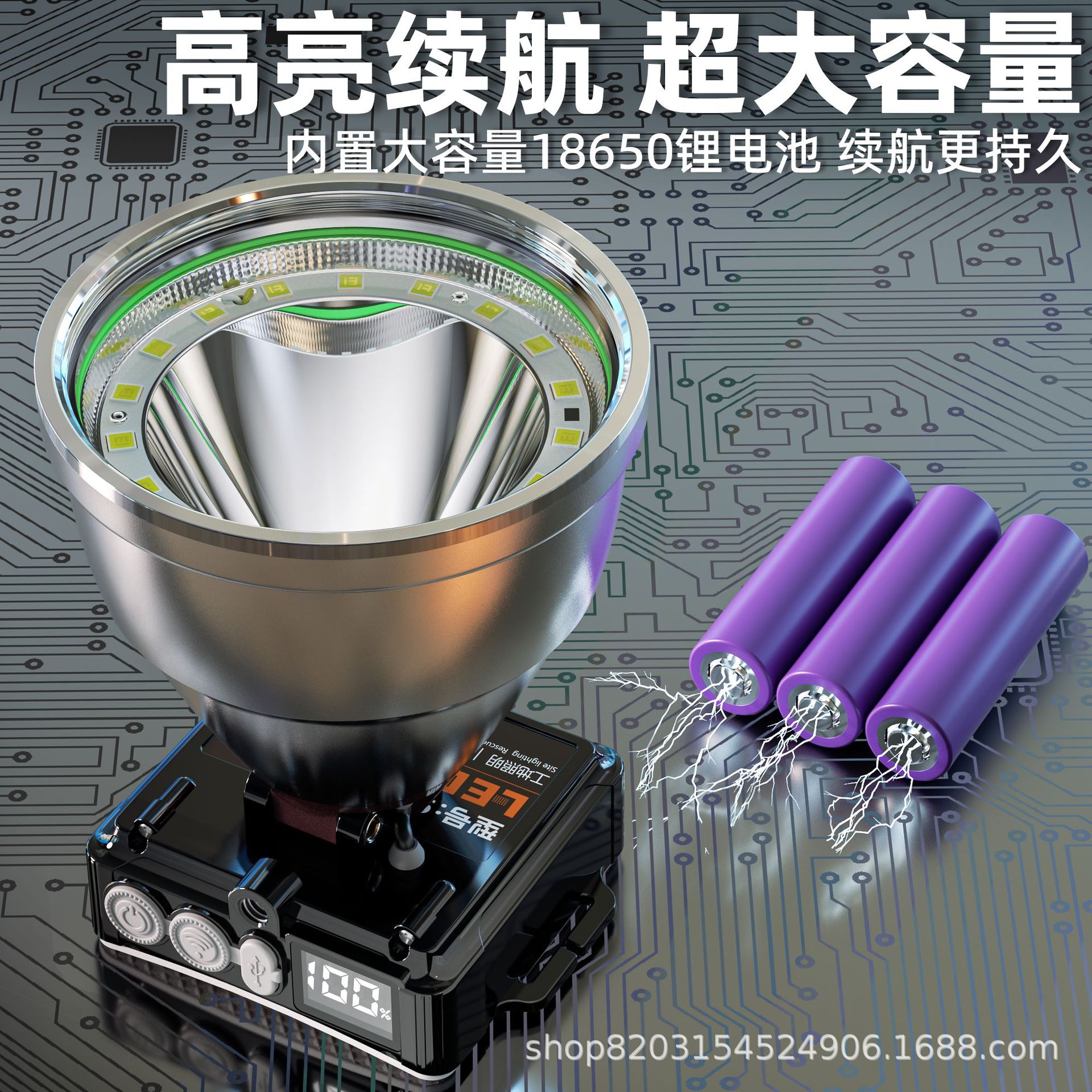 新型屋外ハイパワーledヘッドランプ長航続リチウム電気釣り灯野外強光高ルーメン照明灯