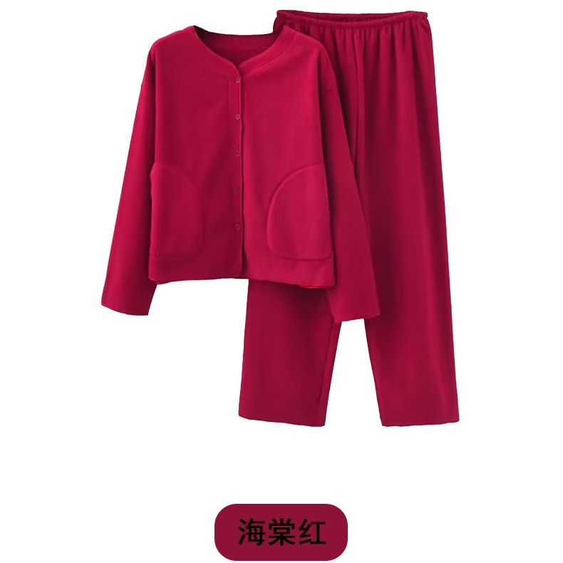 秋冬新款摇粒棉暖绒女士简约休闲时尚可外穿开衫家居服套装 97030