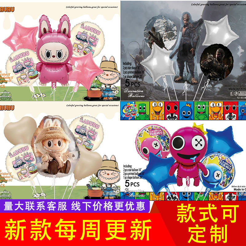 新款卡通铝膜气球套装儿童生日派对装饰用品卡纸精装5pcs铝箔批发