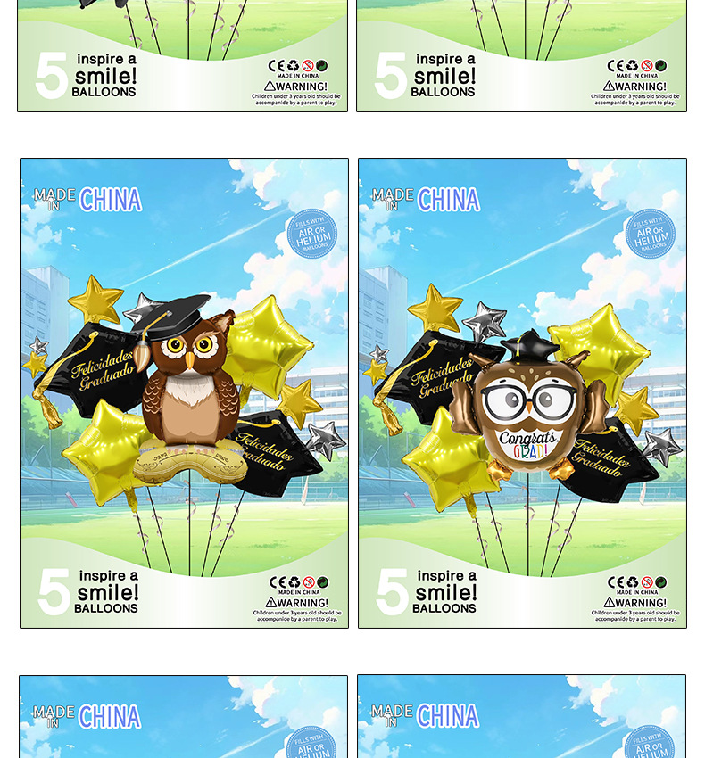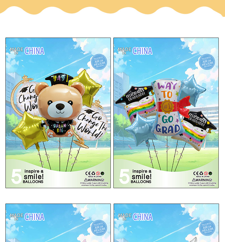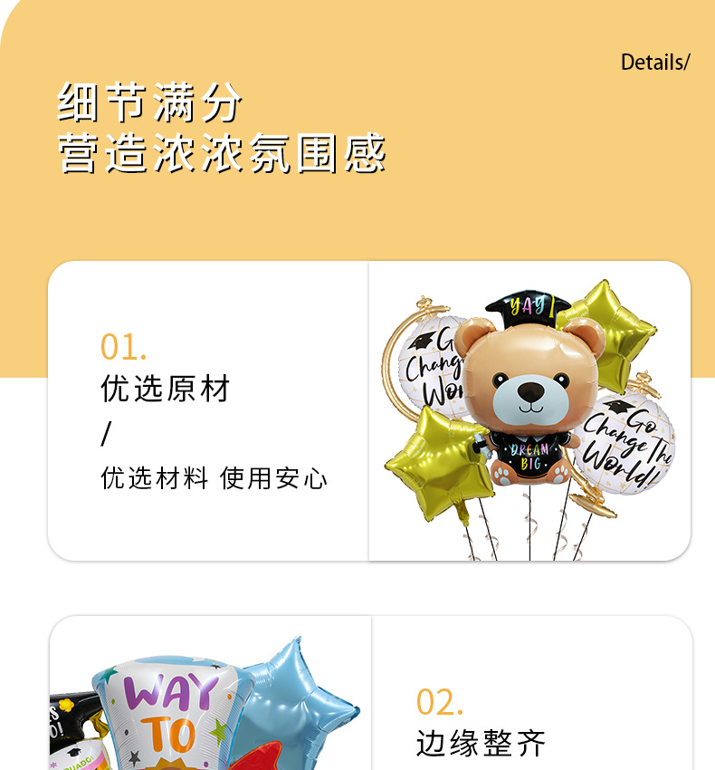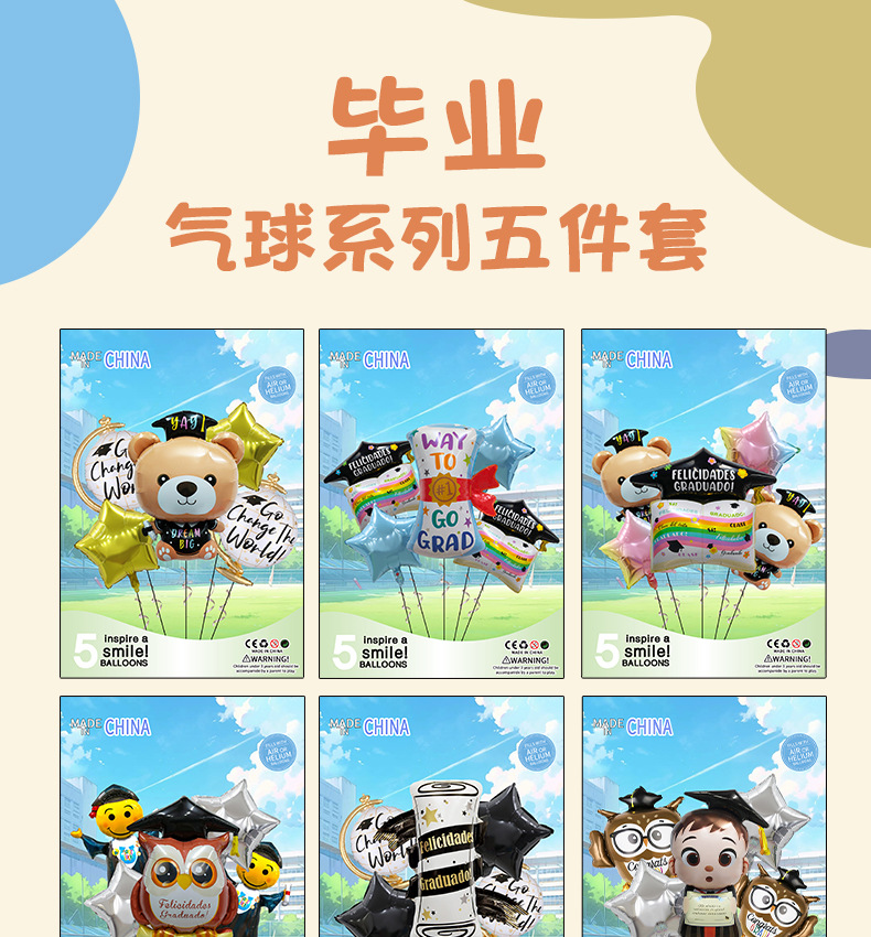 新型卒業アルミ膜風船セット漫画博士卒業証書パーティー装飾アルミ膜風船卸売り