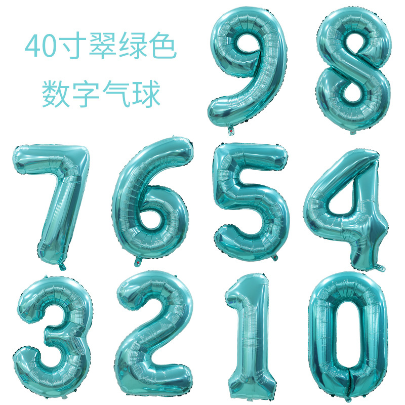 クロスボーダー40インチ亮面尼藍美版大デジタル風船誕生日パーティー緑アルミ箔デジタル風船卸売り