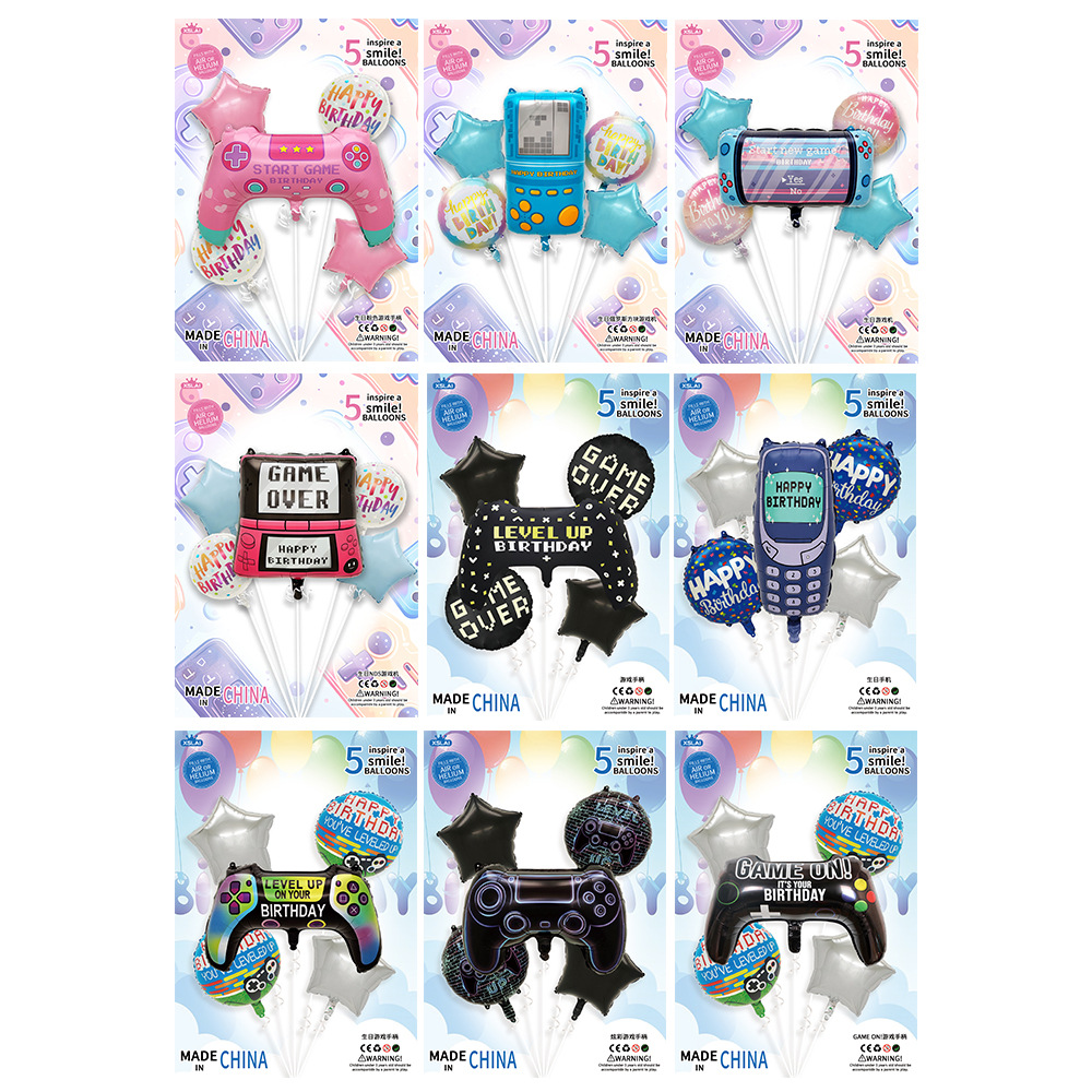 跨境热卖生日手机气球五件套 游戏手柄堡垒之夜主题派对装饰气球