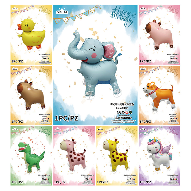 走路带轮动物气球长颈鹿大象兔子恐龙儿童生日气球夜市摆摊气球
