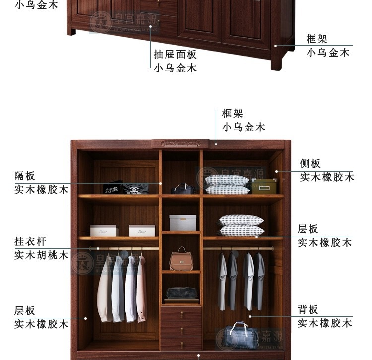 乌金木全实木衣柜大衣橱卧室大容量储物柜组装三四五六门柜子工厂