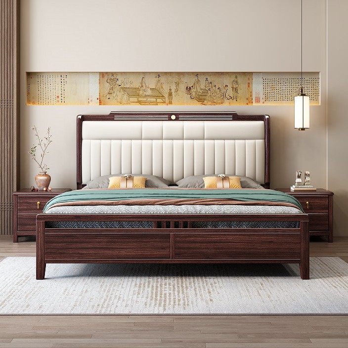 新中国式実木ベッド1.8メートル現代シンプル1.5メートルツインベッド主臥家具高箱貯蔵メーカー直販