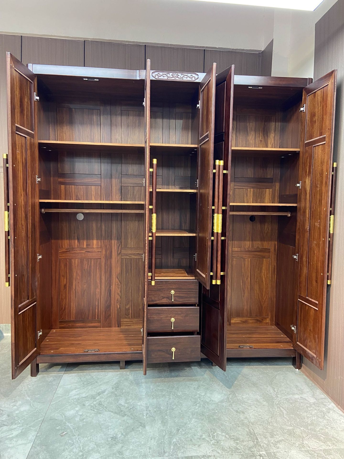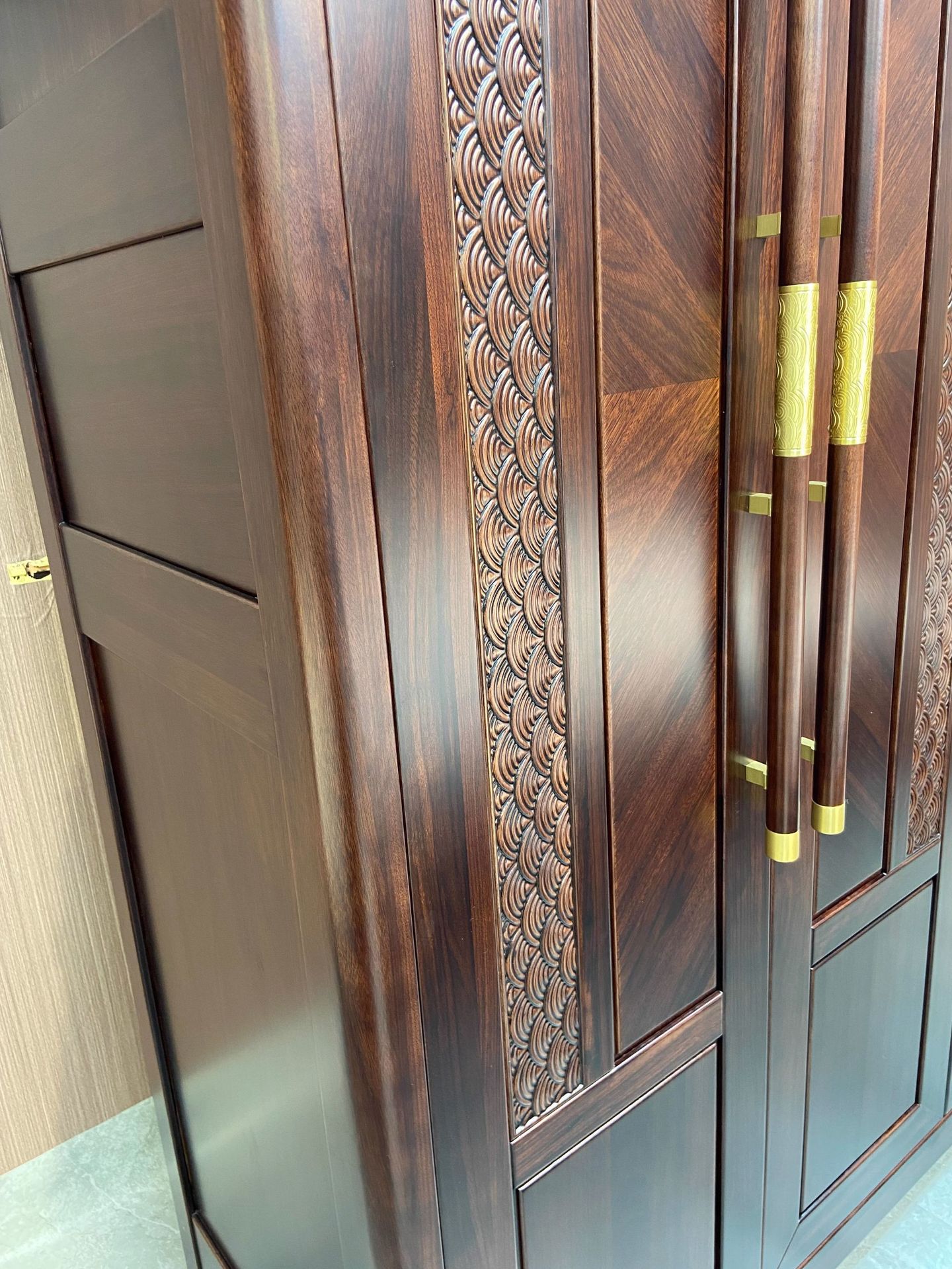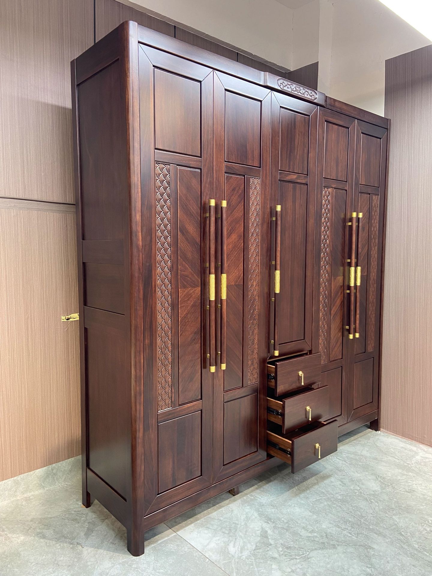 新中国式実木箪笥烏金木現代大容量箪笥寝室四門木製戸棚収納家具