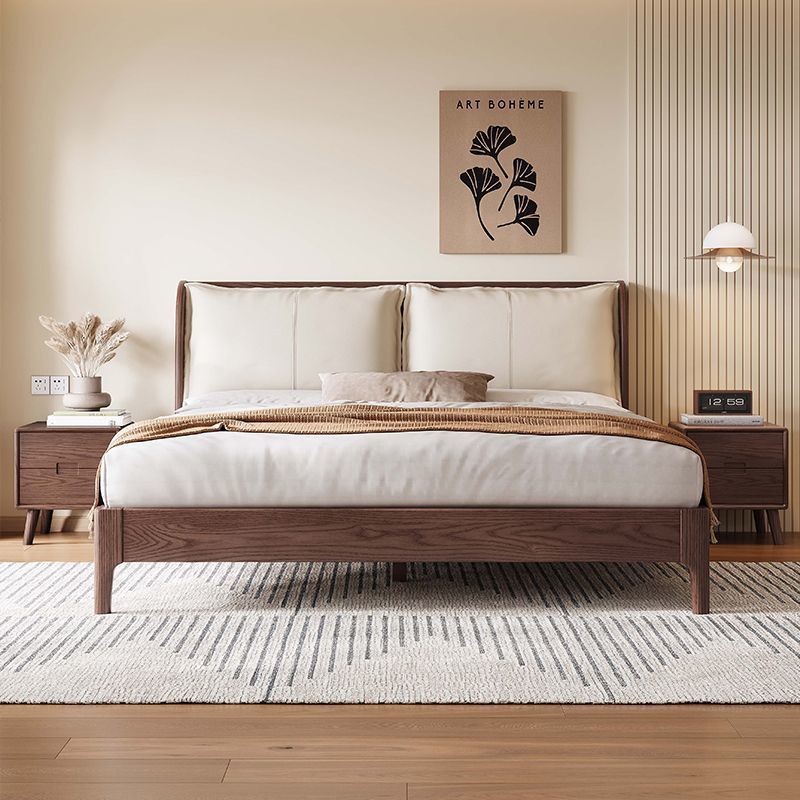 モダンでシンプルな全無垢材ベッド 1.8m ダブルベッドアップグレードされた厚みのある柔らかい背もたれホームマスターベッドルーム大型ベッド 1.5m シングルベッド