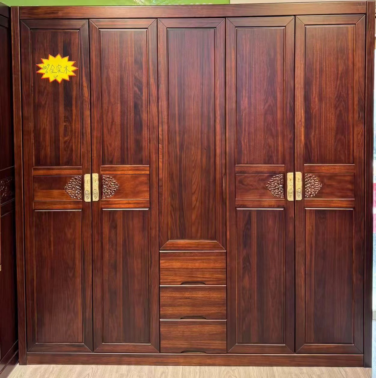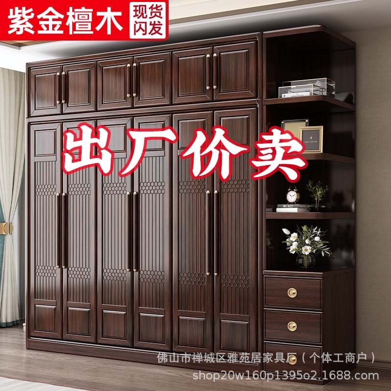 新中式紫金檀木实木衣柜家用卧室柜床家具全套大容量储物组装衣柜