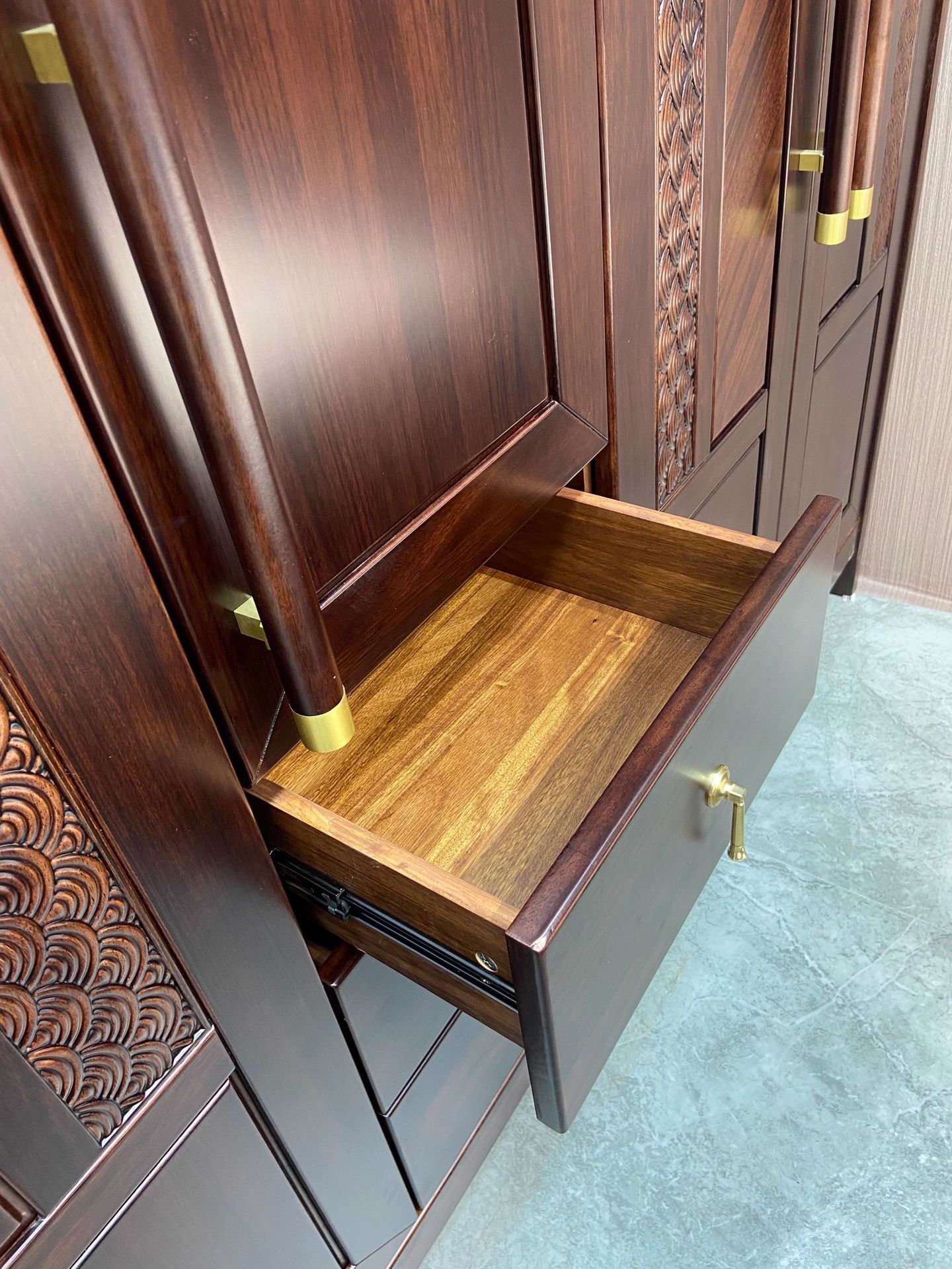 新しい中国風のハイエンドモダンな紫檀無垢材ワードローブシンプルな大家族収納キャビネットワードローブホームベッドルーム