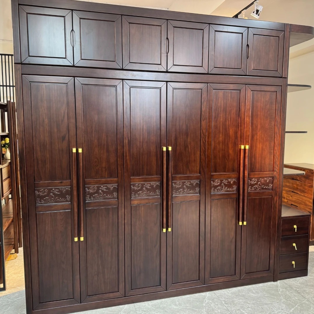 乌金木全实木衣柜家用卧室三四五六门加顶柜收纳转角大衣橱新中式