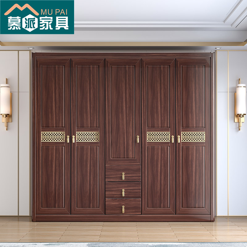 慕派新中国式実木烏金木三四五門たんす現代シンプル寝室収納ロッカー工場直