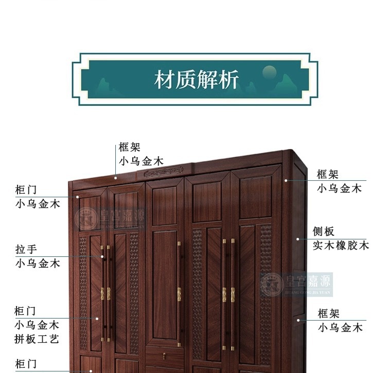 慕派烏金木全実木箪笥大箪笥寝室大容量ロッカー組立四五門戸棚新中