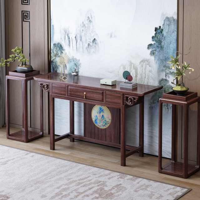 新しい中国風のウッディウッド玄関テーブル、軽くて豪華な禅風の壁掛けテーブル、リビングルームの祭壇テーブル