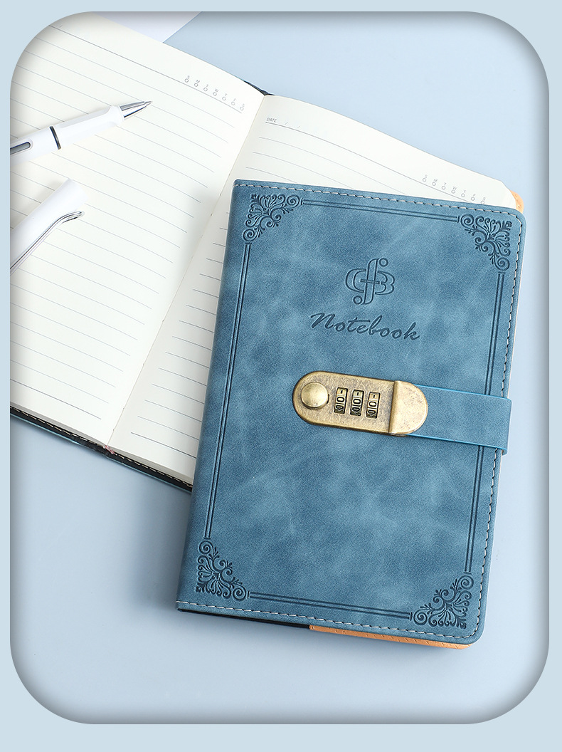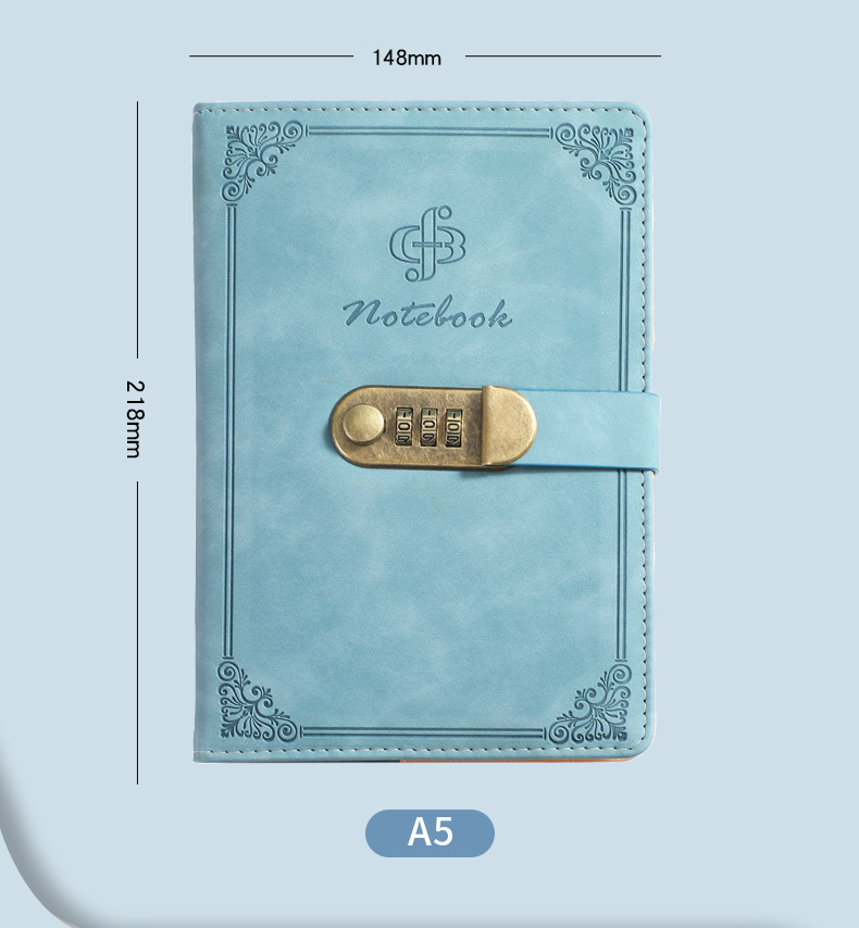 A5 イミテーションレザー パスワードブック ロック付き日記帳 厚手手帳 学生用パスワードロック付きメモ帳 ノートブック ポータブル