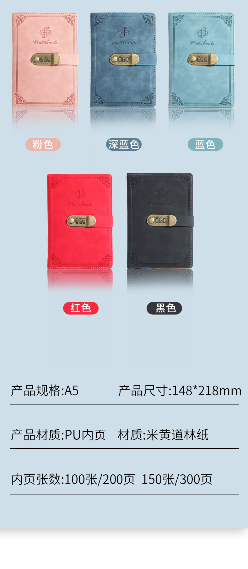 B5/A5 パスワードブックノートブックロック付きハンドブックパスワードブックルーズリーフブック秘密日記ブックメーカー卸売