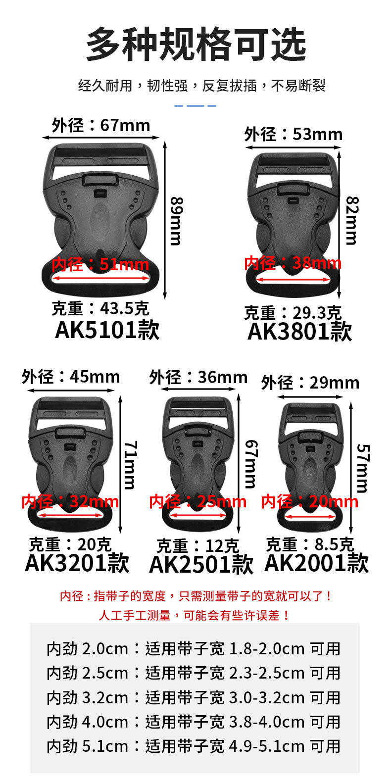 1寸塑胶扣具配件塑胶插扣 箱包扣子腰包卡扣 背带扣子母包带对扣