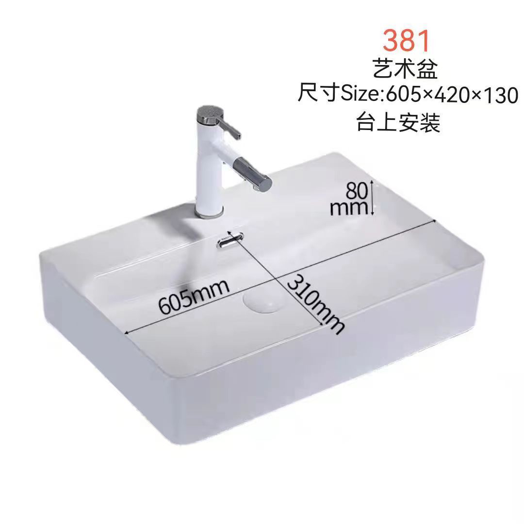 高温烧制陶瓷长方形台上洗手盆小户型阳台卫生间龙头工程单盆跨境