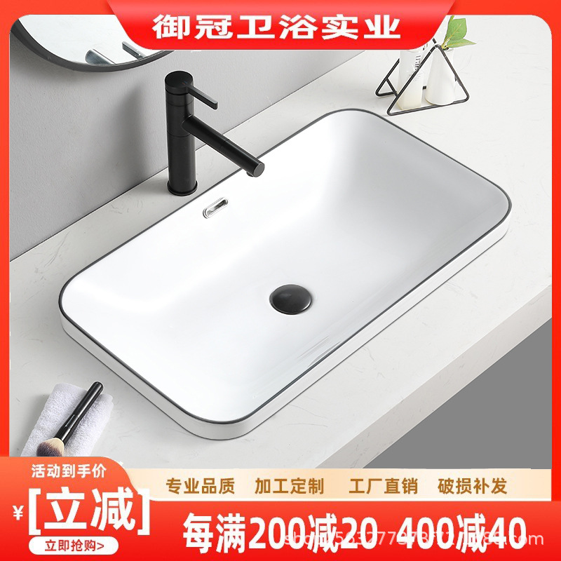 台中製 半埋め込み式洗面台 セラミック製洗面器 長方形 黒縁線 洗面器 シンプルな洗面台