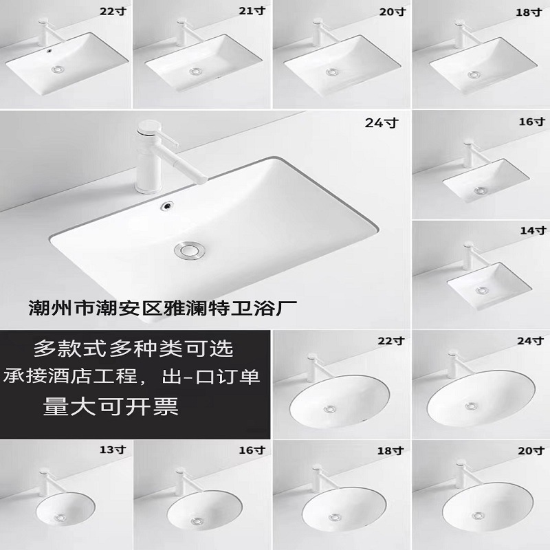 厂家批发嵌入方形圆形陶瓷台下盆洗脸盆家用浴室卫生间简约洗手盆