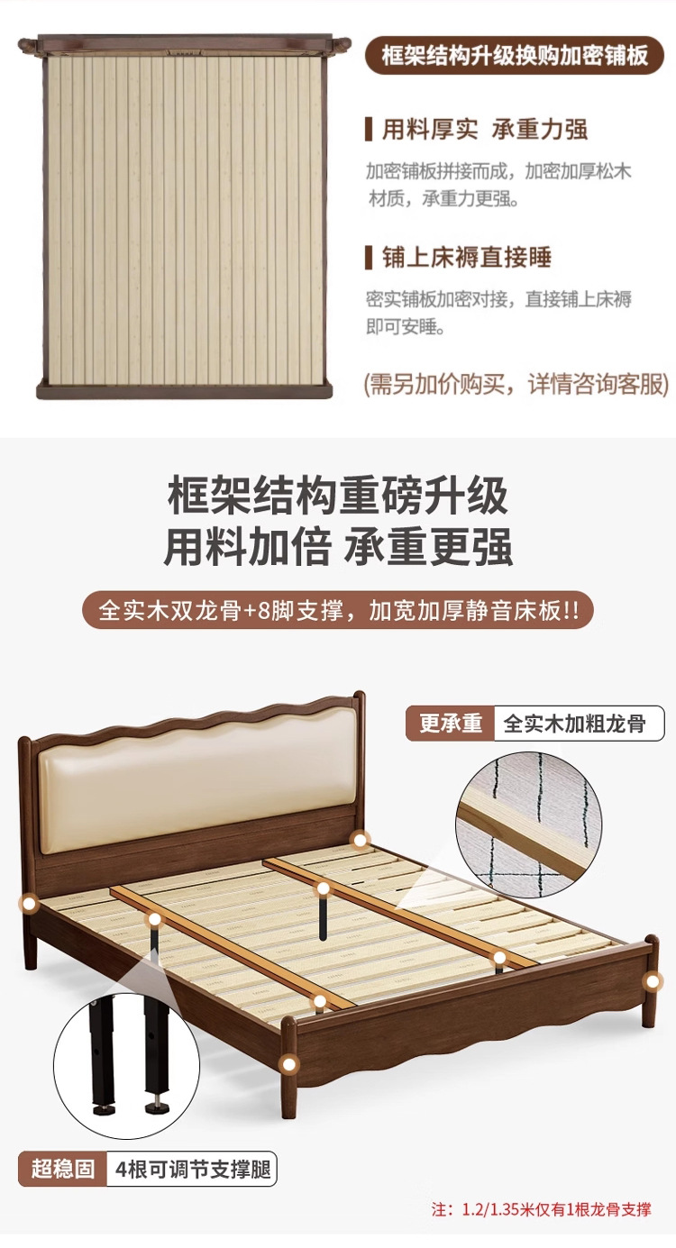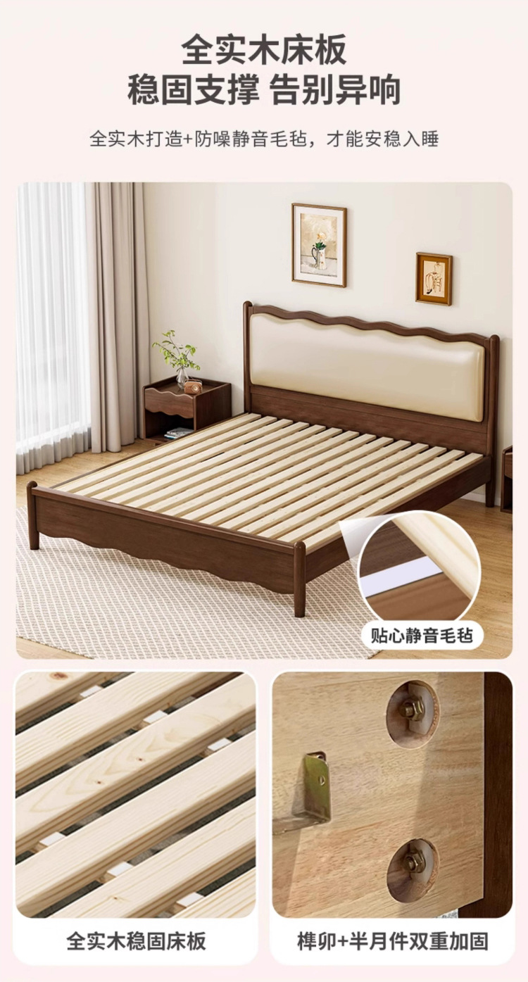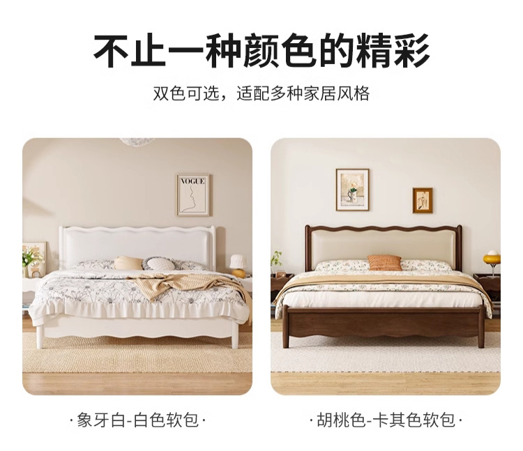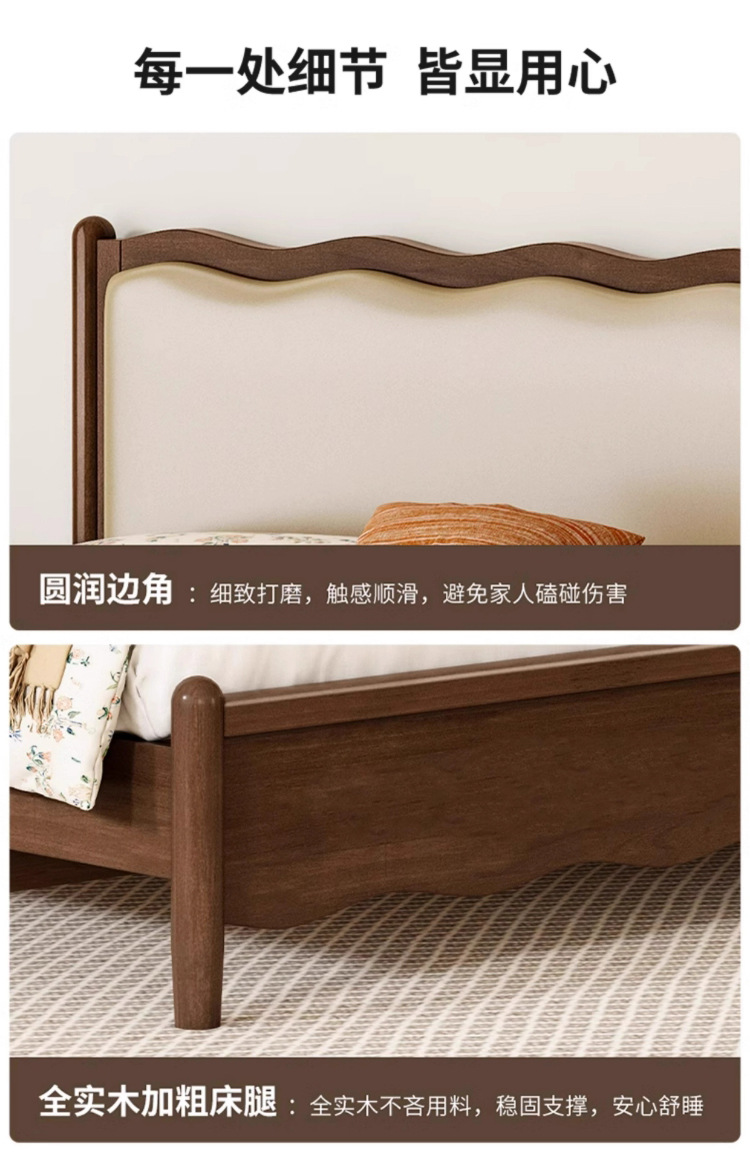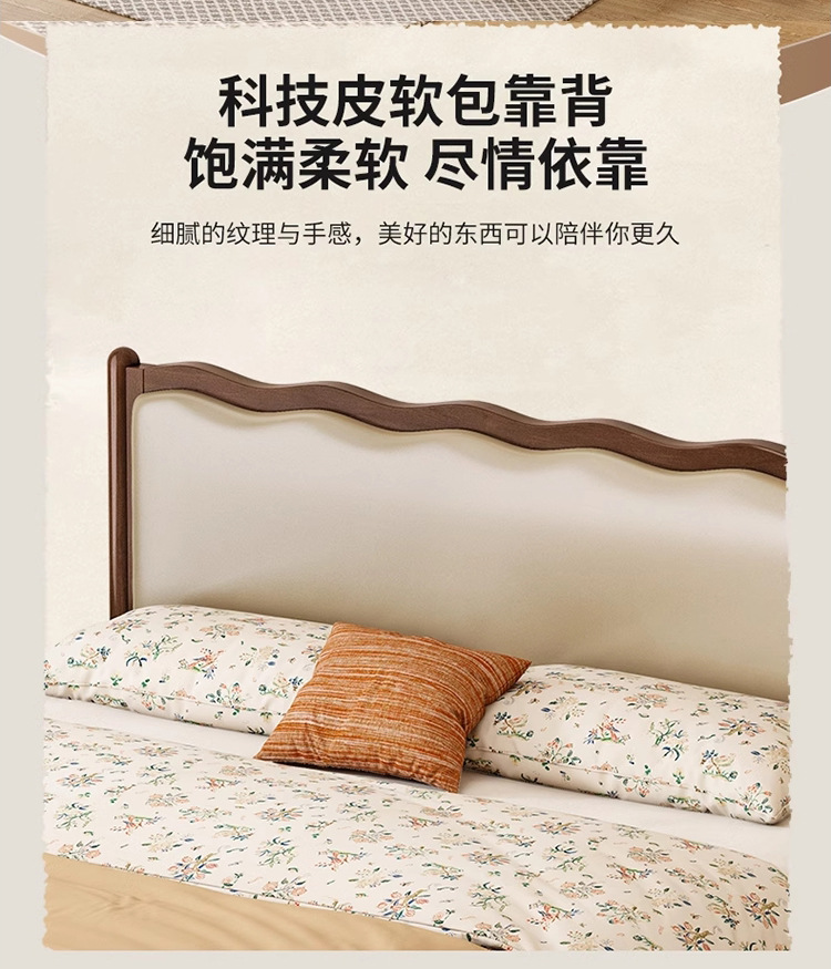 赫本床法式复古实木床中古风主卧室大床家用1米8床双人软包油蜡皮