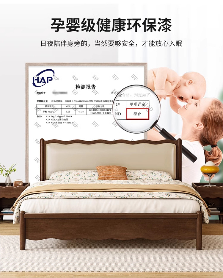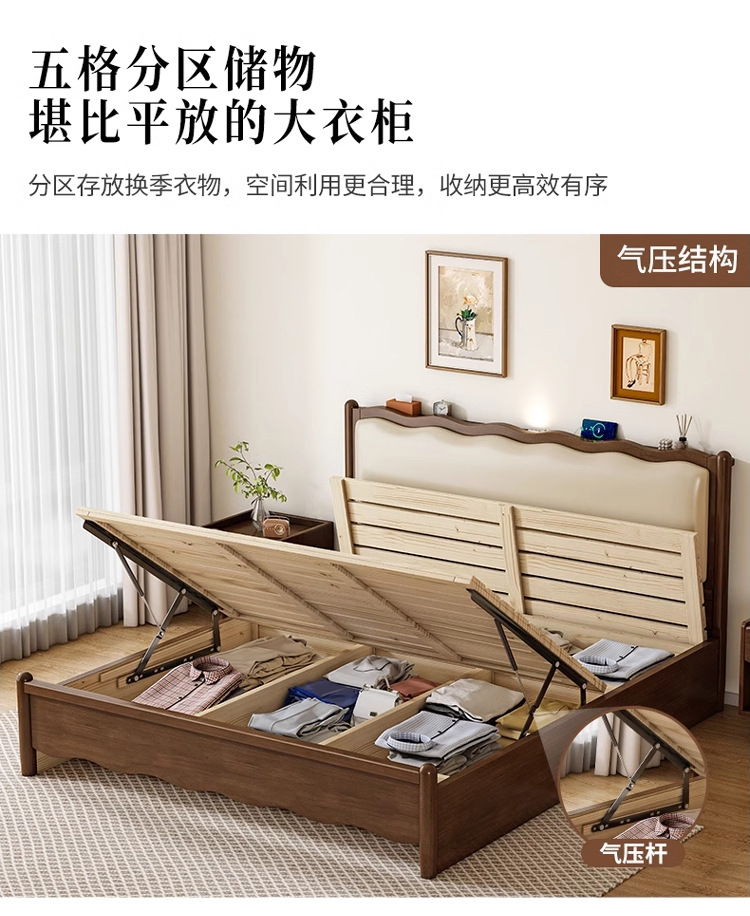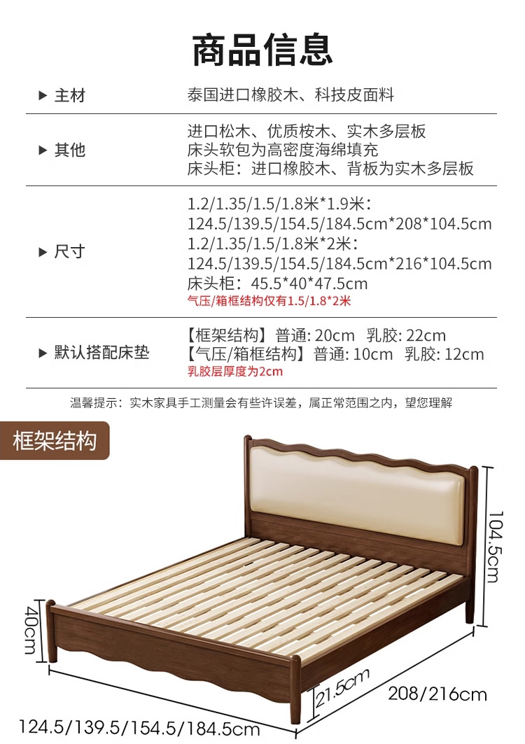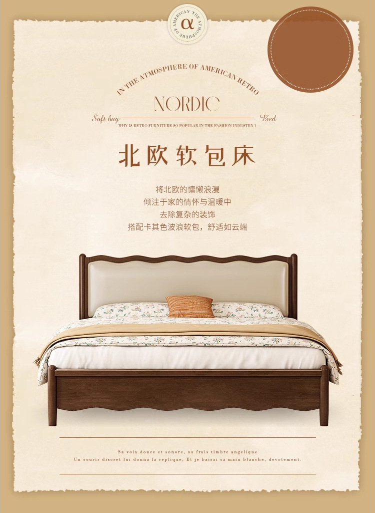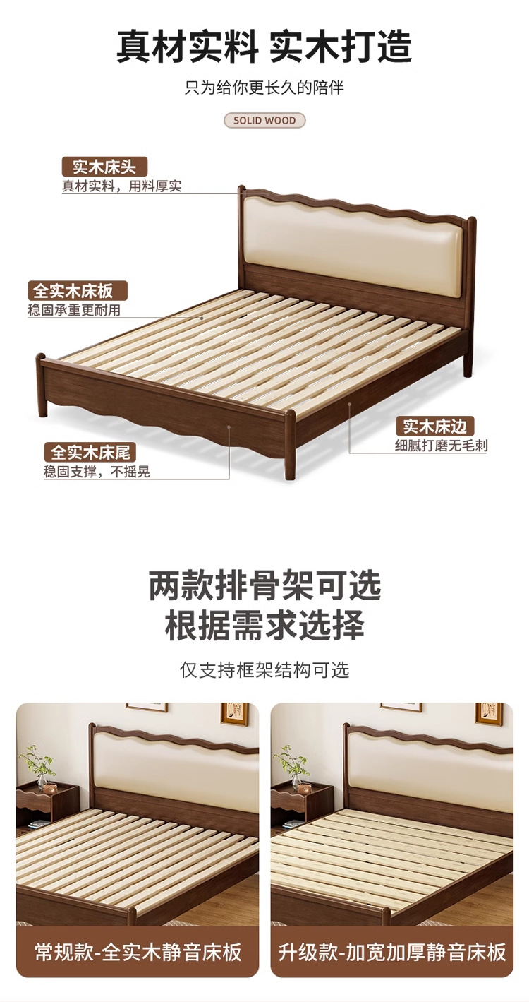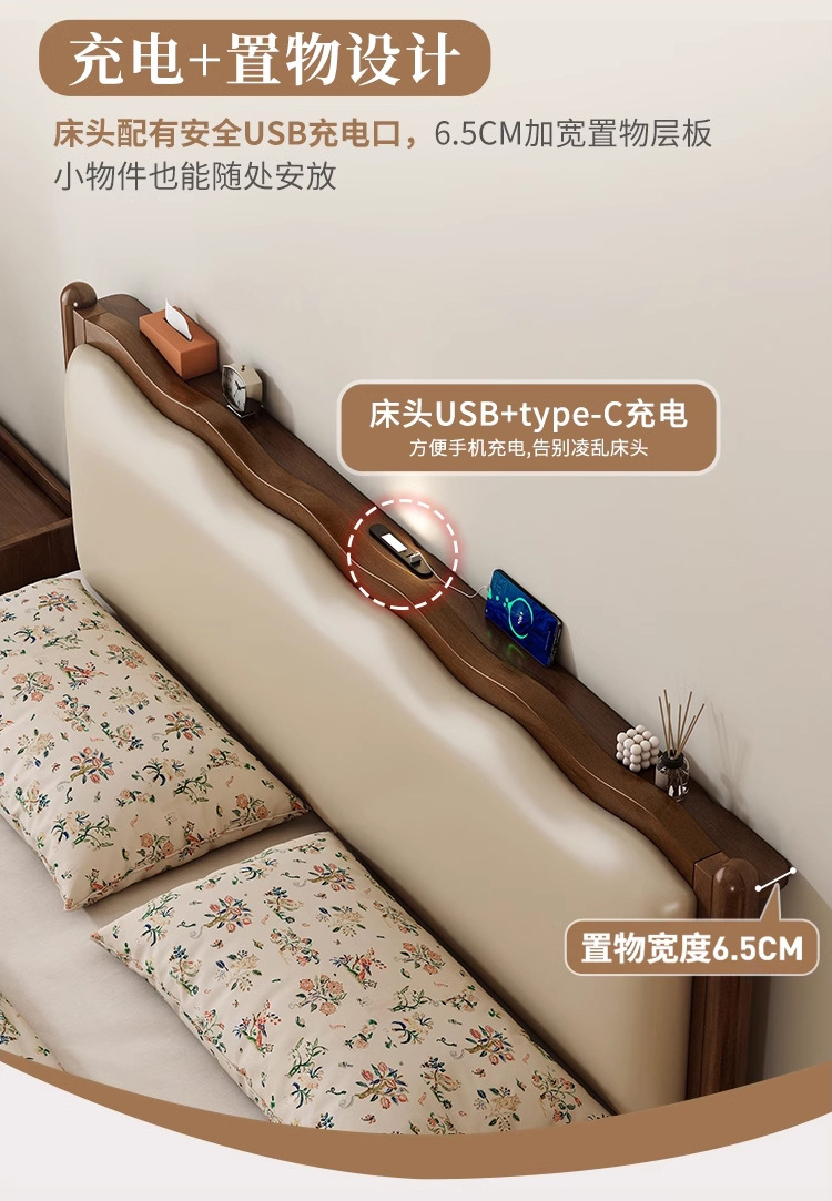 赫本床法式复古实木床中古风主卧室大床家用1米8床双人软包油蜡皮