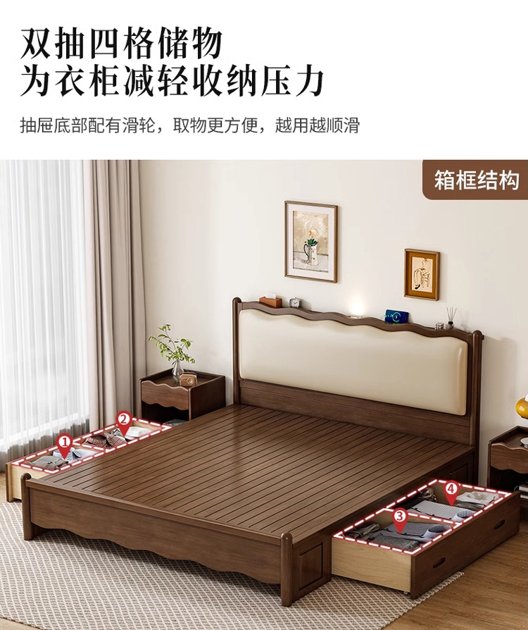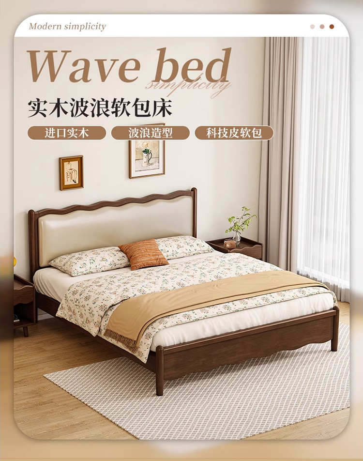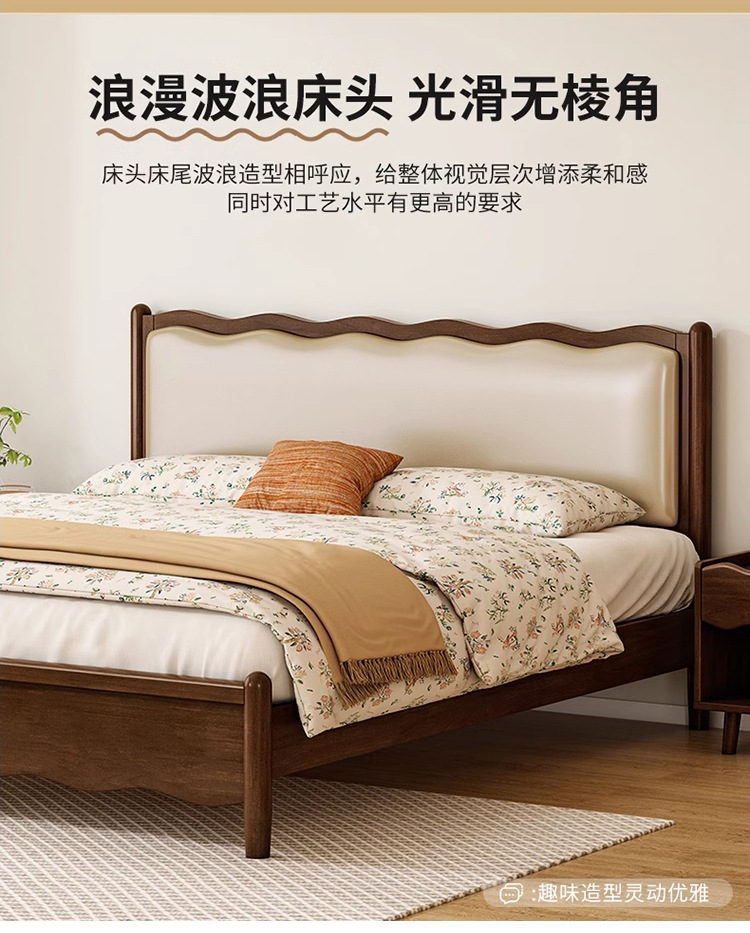 無垢材ベッド 北欧風 レトロ ダブルベッド 1.8m ウェーブベッド 中世風ベッド フレンチベッド シンプル ソフトパッケージ ウェディングベッド 寝室用