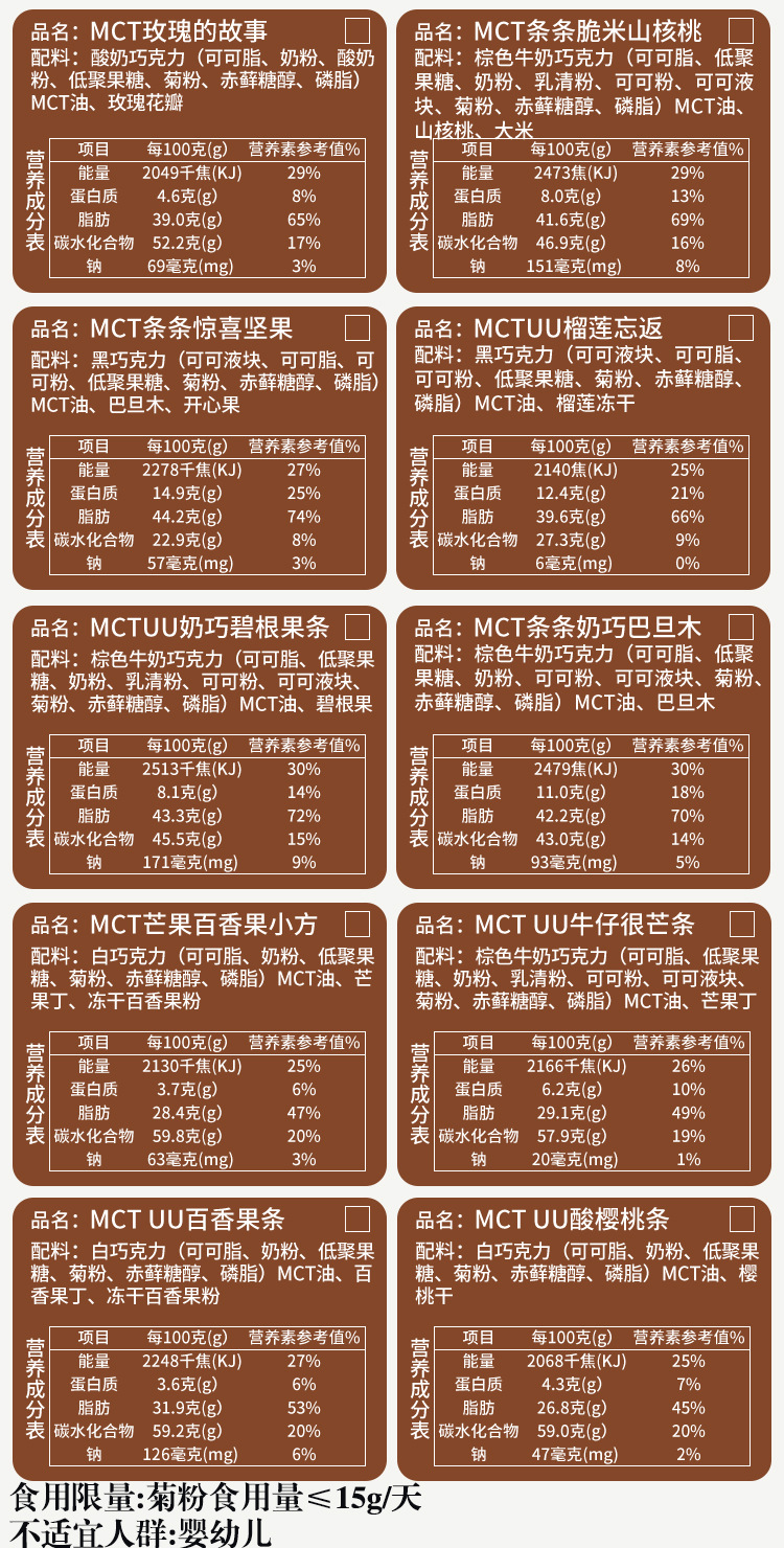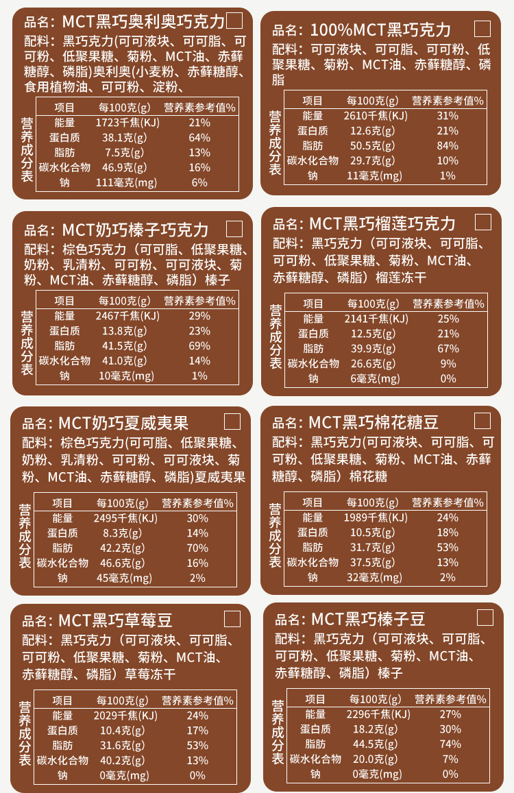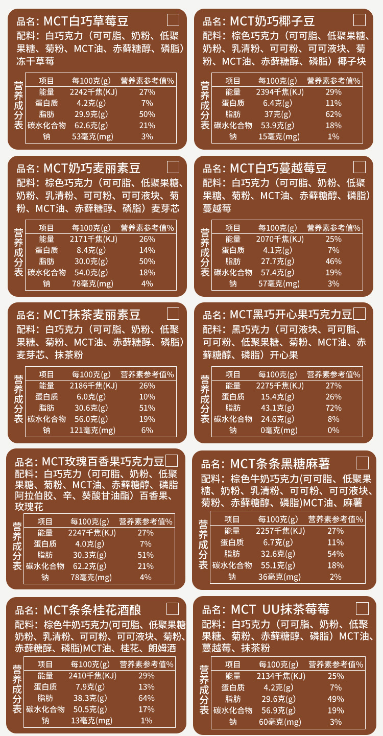 原材料と成分 ココアバター、粉乳、フラクトオリゴ糖、イヌリン、MCTオイル、エリスリトール、リン脂質