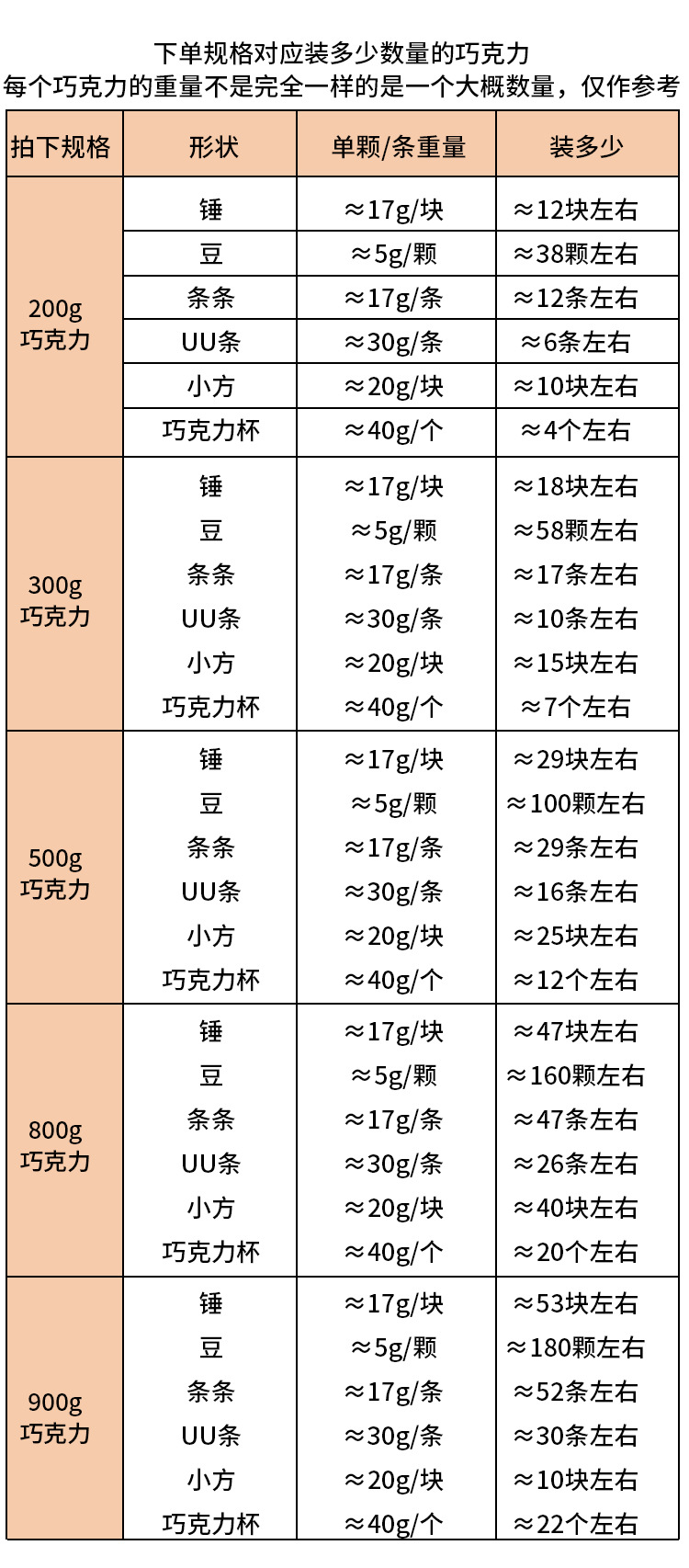 梱包仕様 200g,300g,500g,900g,1400g