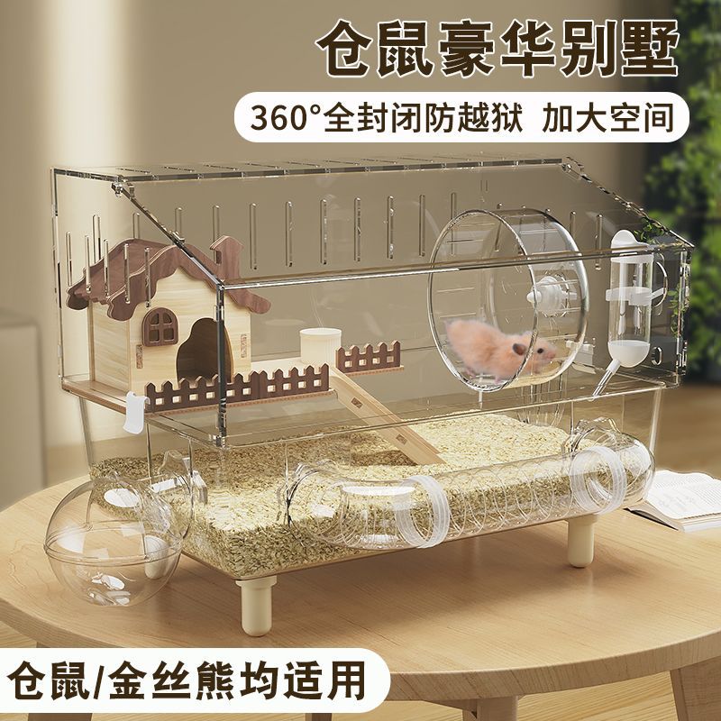 ハムスターケージ特大高級ヴィラゴールデンワイヤーアクリル透明専用飼育スペース小型ペット大きな家