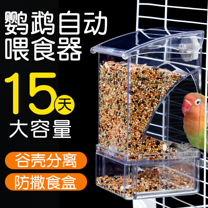 オウム給餌器鳥食箱吊り式自動下料器谷殻分離防飛散防止食槽新型給餌器