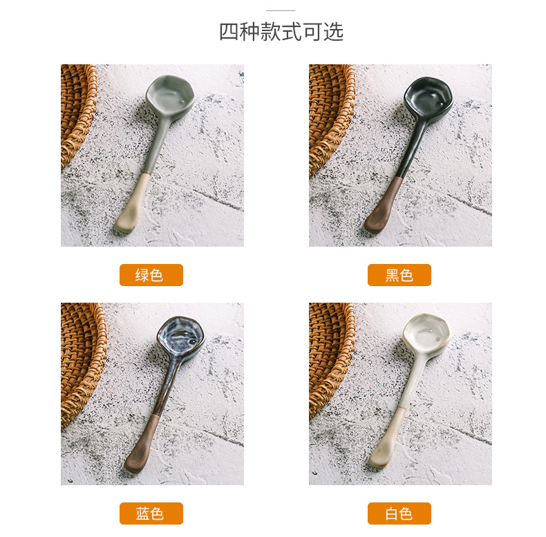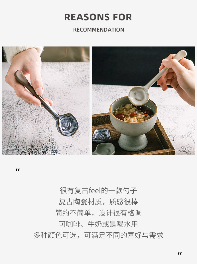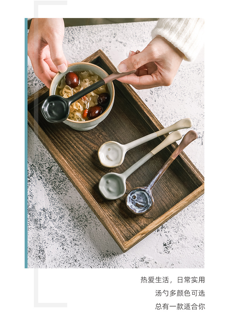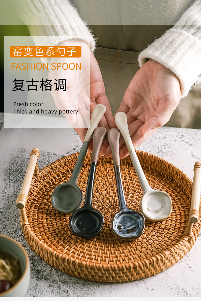 レトロな日本式家庭用キッチンスープ手作り陶磁器スプーントランペット高颜値スープスプーン粗陶スプーン