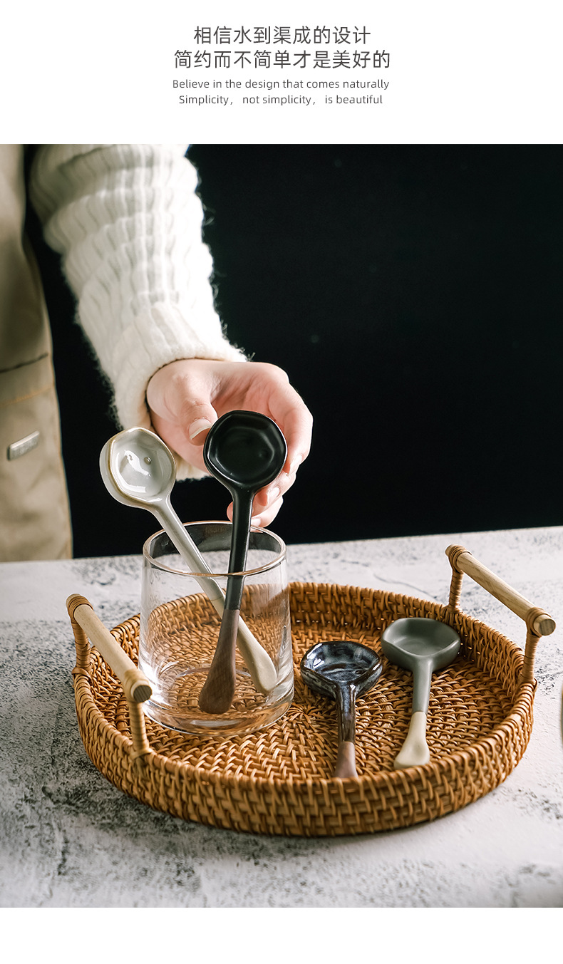 セラミック耐熱コーヒースプーン長柄レトロ日本式陶土味付け攪拌スプーン卸売り粗陶手作りins風小