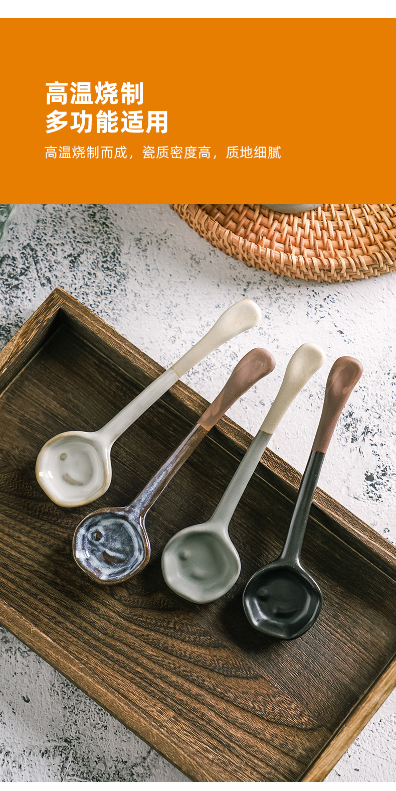 日本の手作りレトロコーヒースプーン、陶器製スプーン、長柄コーヒースプーン、家庭用スプーン、厚みのある軽い高級感のあるレトロスプーン